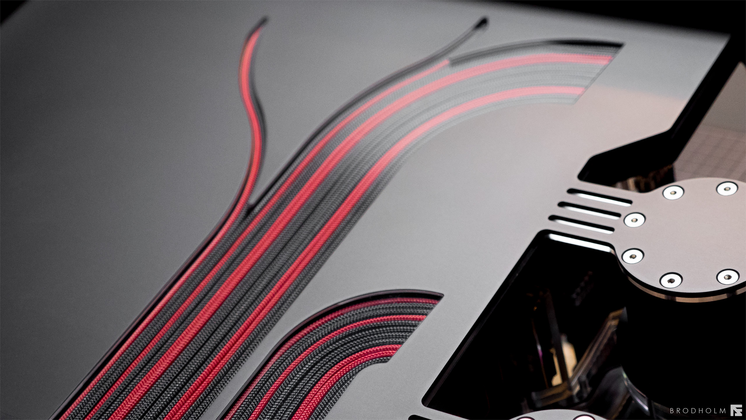Cooling: Full EKWB lineup. Full cover motherboard block, CPU, 2xGPU, RAM cooling blocks, 2x D5-pumps, 3x140 mm and 1x140 mm radiators. Everything connected via a custom-designed and CNC-milled distribution block.