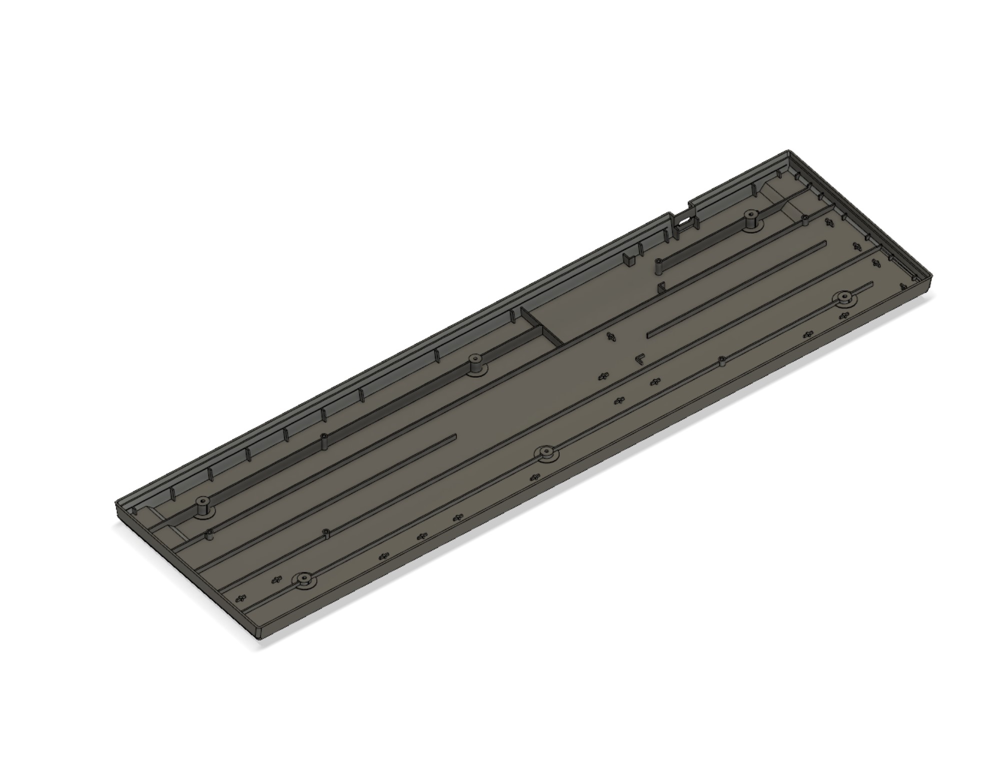 Peeking inside, it's clear that most of the structure of the keyboard actually comes from the top plate, the base simply being an injection-moulded plastic housing. This was quite interesting, as it meant that the PCB and other bits were all a bit limp and flimsy without it. What I also saw though, was that the LEDs pass through the PCB and so are visible from the underside.