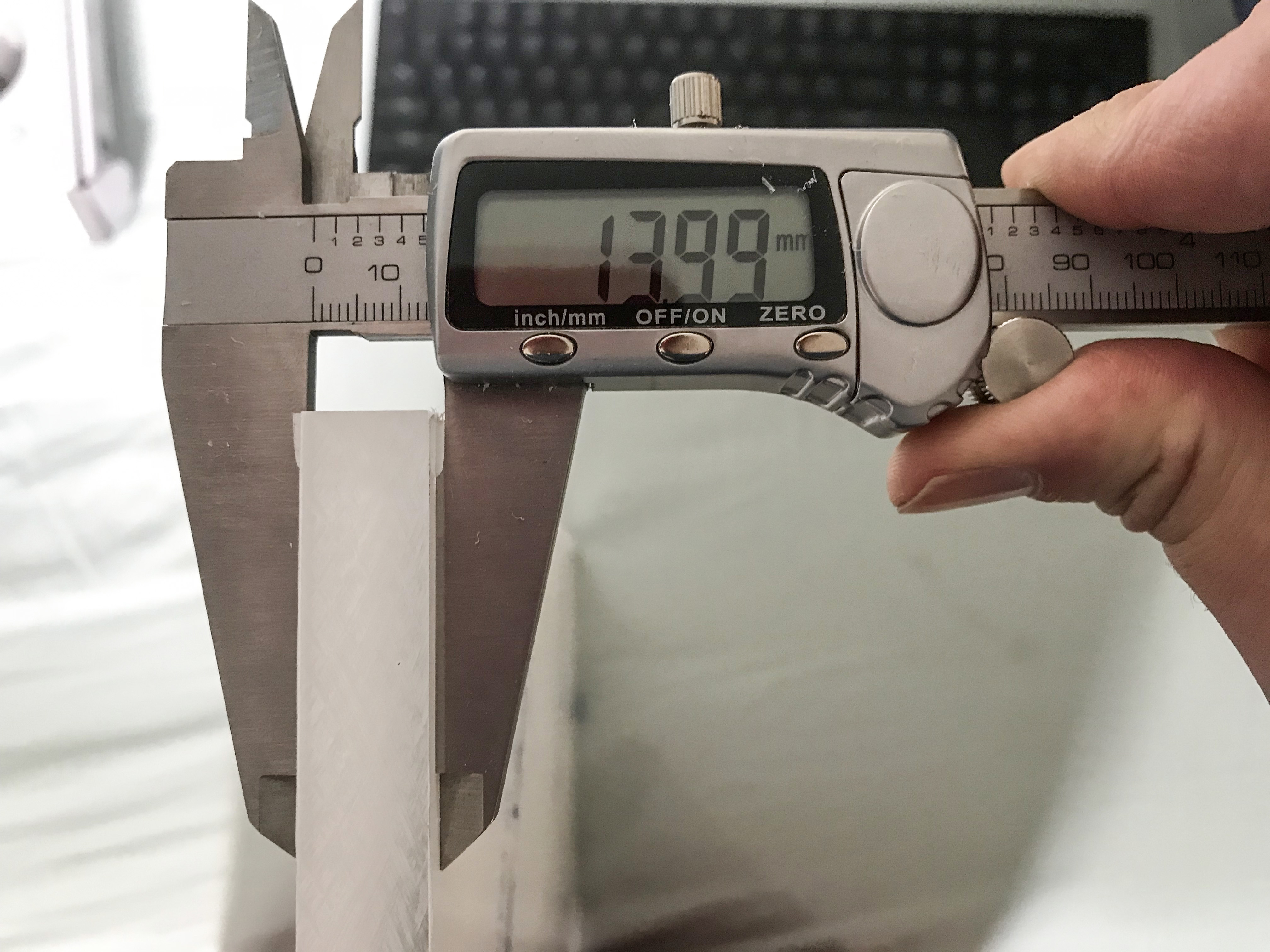 The housing is about 12mm in depth, so it made sense to go with 15mm acrylic which can then be reduced to that thickness. It's a good idea to work downwards rather than go with 12mm acrylic off the bat, as the material tolerances for cast acrylic fall off a cliff the thicker you go. In fact, for my 15mm piece there were some points that were under 14mm in thickness! I probably would have returned a piece like that normally, but time was ticking.