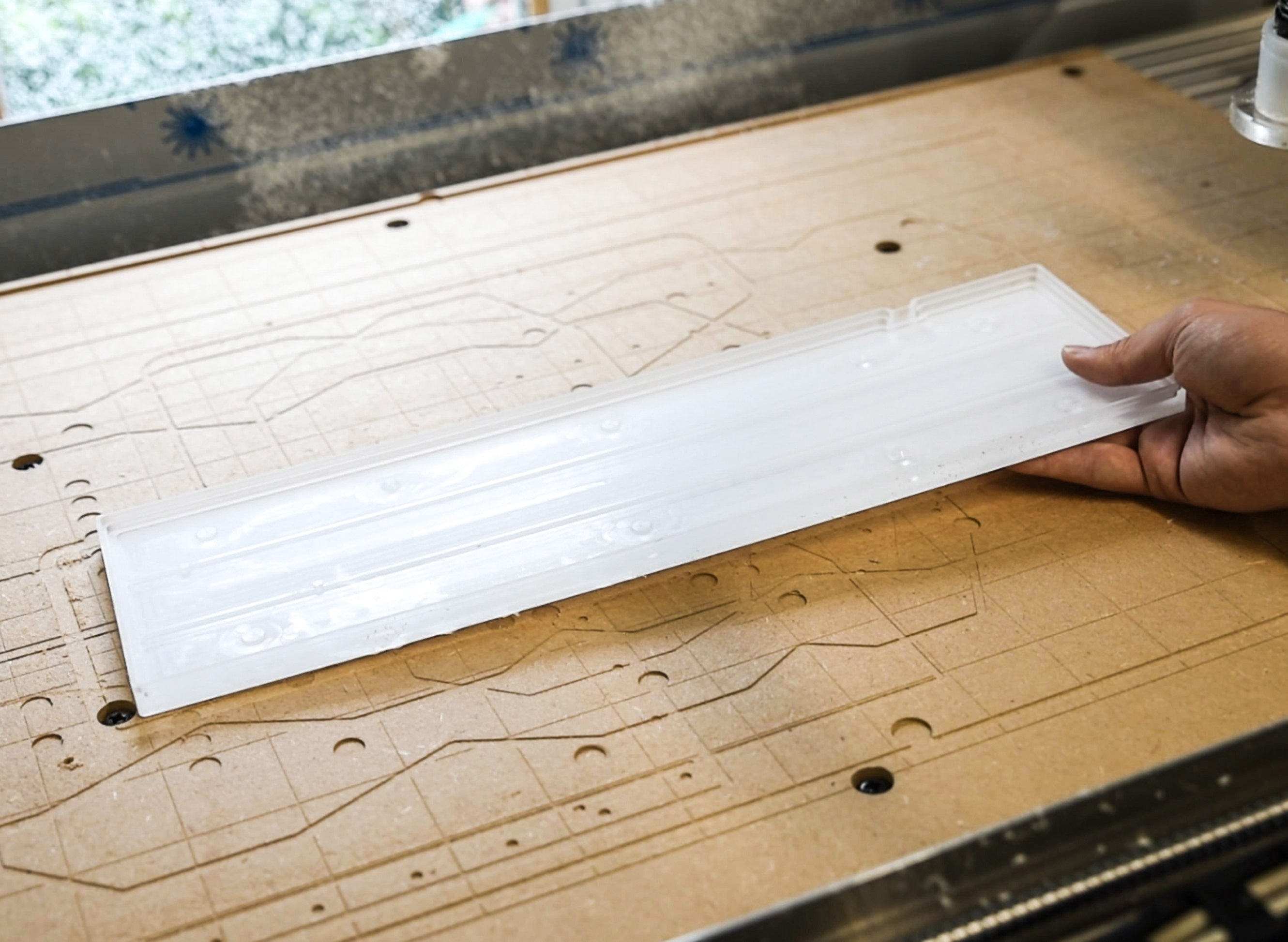 After that it was just a matter of going at it with the random orbital sander with 180-, 320-, and 500-grit papers to leave a nice and smooth finish that would diffuse the light nicely.