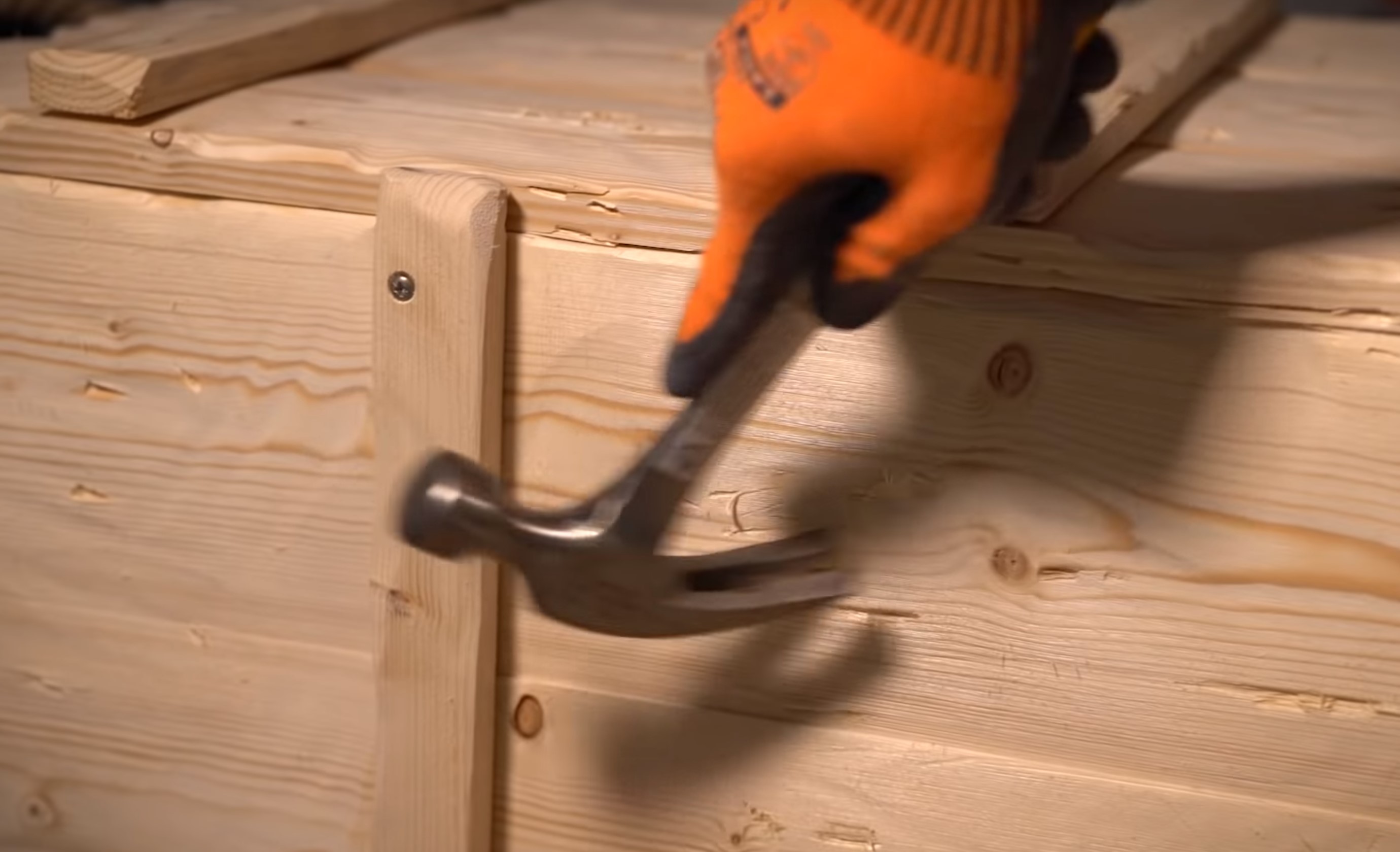 Since we would be mounting parts at a later date inside the crate, it seemed sensible to screw the side boards into place rather than gluing, this way they could be removed later in case any further work needed to be done to them. I saved the wonkiest planks of the lot for the lid, since this isn't a key structural element. In fact, the boards chosen were all warped; this was to aid the ageing process down the line.