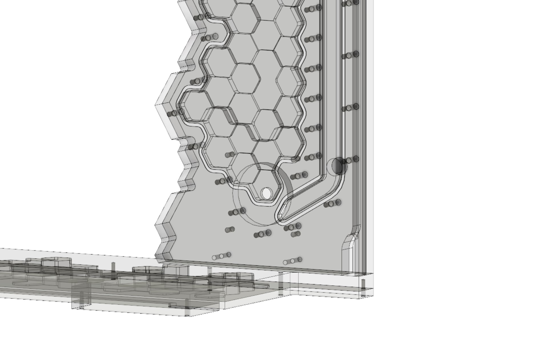 Essentially it's two lighting plates with machined, stepped hexagons cut into them and channels for LEDs down the back, plus a matching distro plate with the DDC pump integrated into it. These acrylic plates would then be accented by a host of aluminium panels also sporting the same honeycomb pattern milled into them. The plates connect to one another and the chassis using M4 screws and M3 square spacers (the same sort that Parvum uses to construct their cases); this should provide ample strength whilst also being simple to implement.