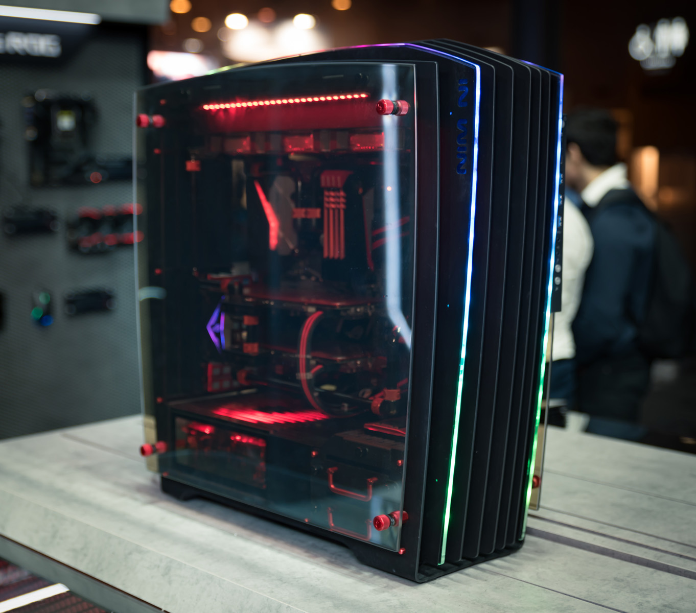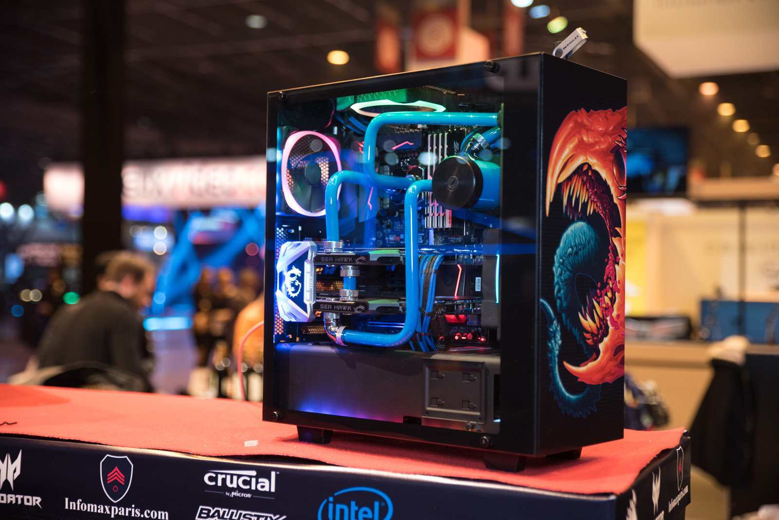 Adjacent to the LDLC booth was Thermaltake, rocking a plethora of LCS systems as well as a cabinet containing Mike's impressive Tower 101 mod. This mod was on prime display at Computex earlier in the year and like then certainly pulled in passers by for a closer look.