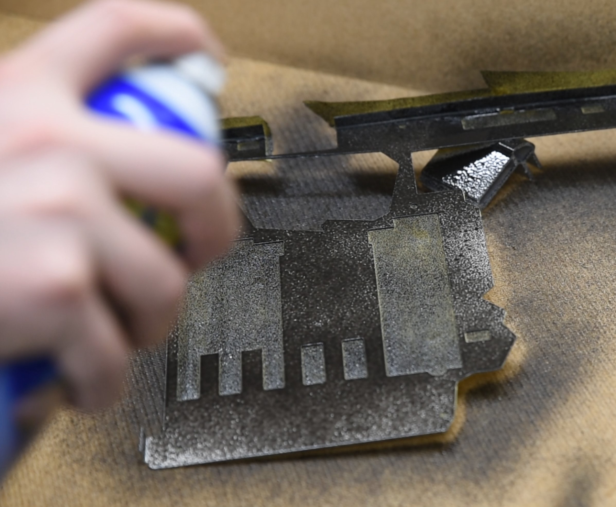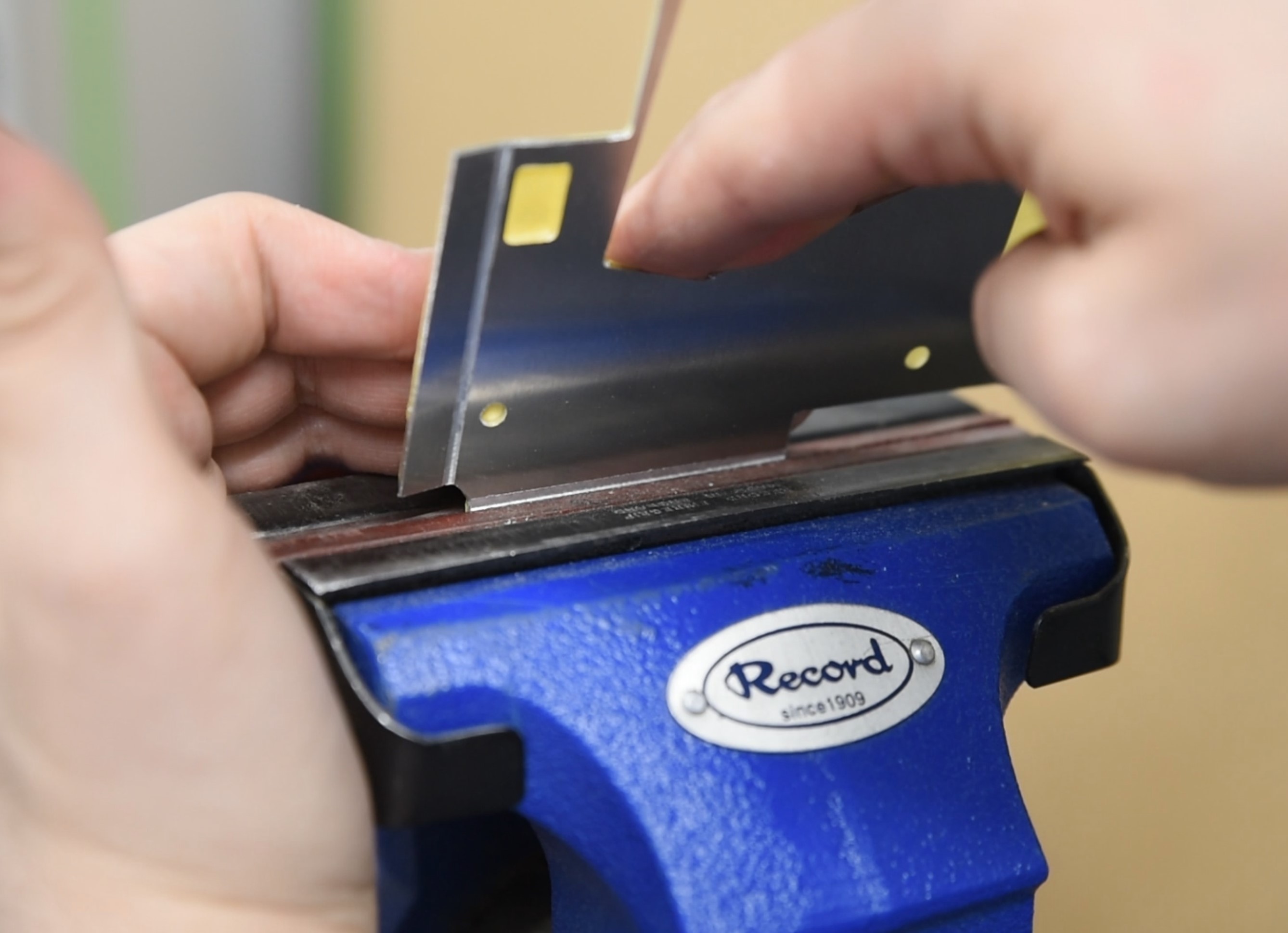 With the top face brushed, it's time to bend the flanges and also plastidip the underside. Whilst there should be sufficient clearance, it's still a metal part, so it's wise to protect against potential shorts. Cover the brushed side with low-tack painter's tape, then place the flanges into a vice or use a similar clamping method. If you were able to score the surface for the bends, this will go much smoother.