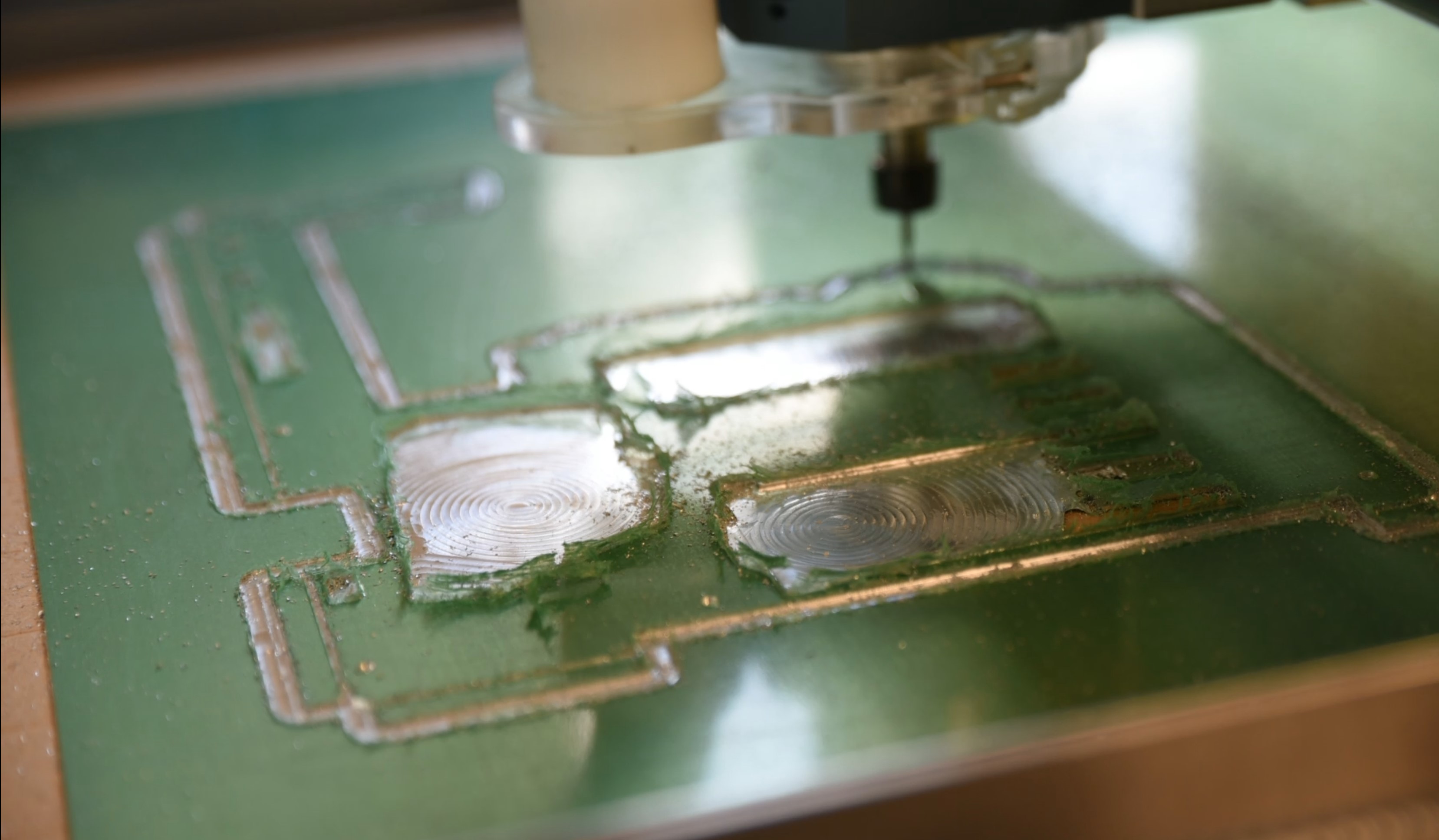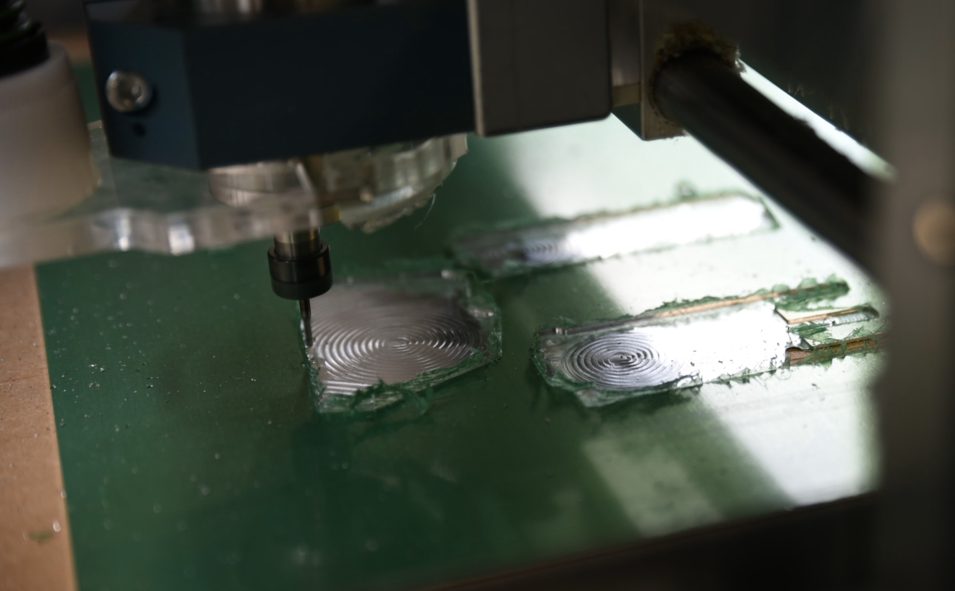 With the G-Code exported and loaded into the control software, I loaded the sheet into the bed of the router and secured firmly in place. The forces on a thin workpiece like this are pretty minimal, but it's worth keeping an eye out for any distortion, as you can guarantee a thin sheet like that won't be flat! This is a really simple piece to cut on the machine, so we just let it do its thing and prepped the later parts.