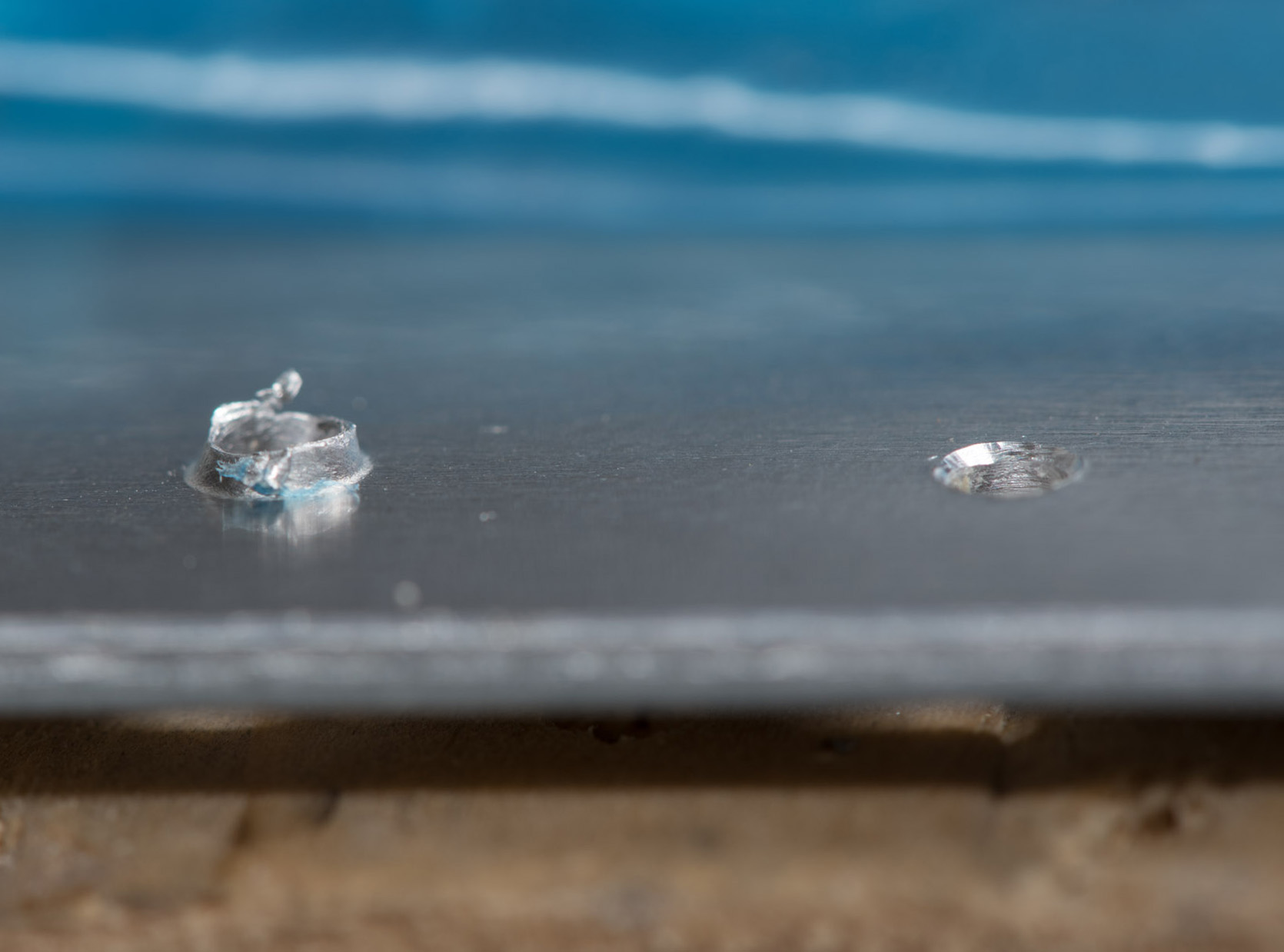 Keeping your drill bits sharp is paramount. Crisp cutting edges not only mean less friction and quicker drill times, but they will vastly improve the surface finish. Below I took two bits, one an HSS and the other a Cobalt, and drilled two holes in 2mm aluminium over some wood scrap. Both bits have been in use for similar times but the HSS bit is significantly blunter by now. The bit has pushed and scraped its way through the metal rather than cutting cleanly.