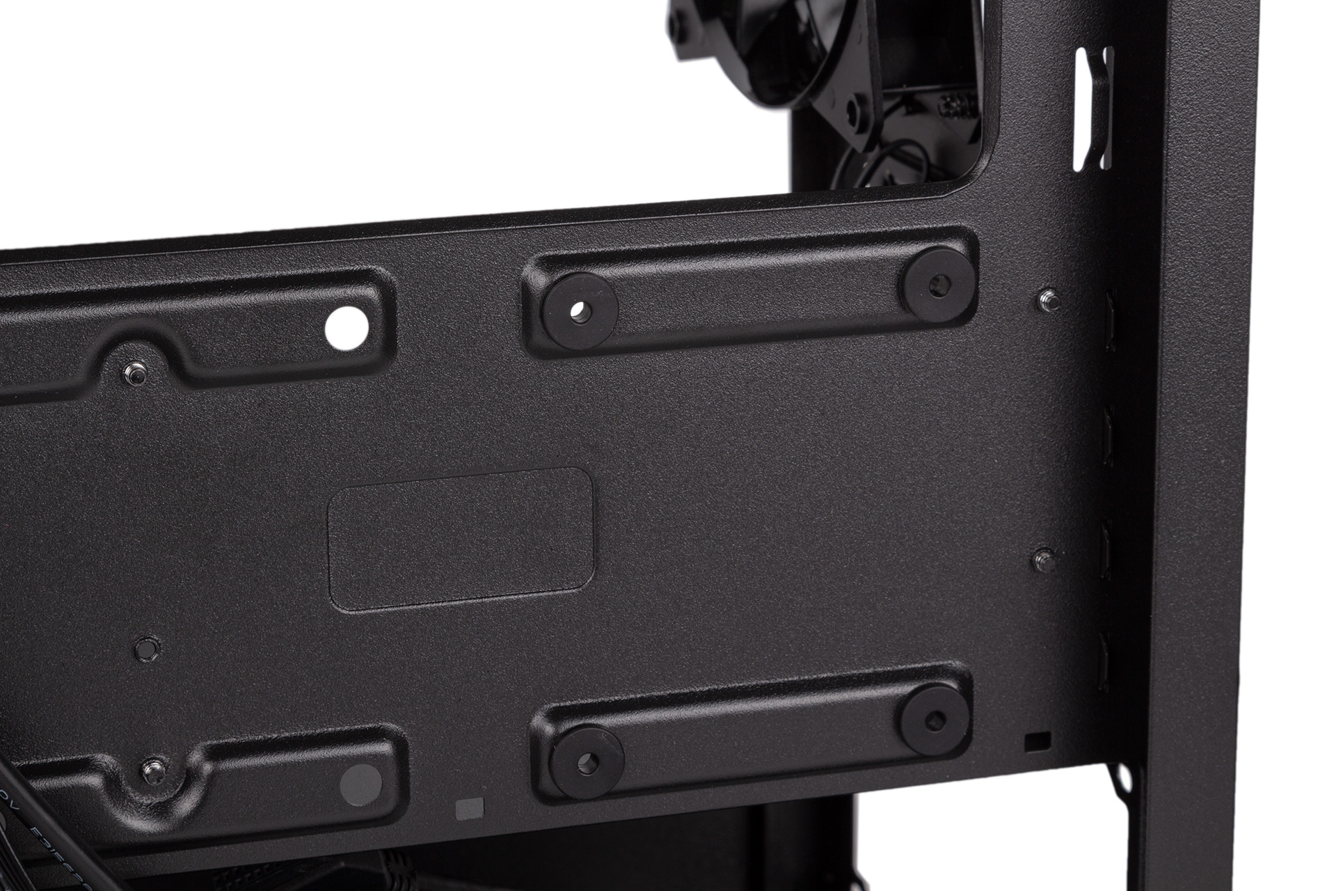 Inside we find a typical dual-chamber layout that’s neat and spacious at the same time - most large CPU coolers and pretty much any graphics card will fit fine. Since this is a micro-ATX chassis the main chamber’s volume is smaller than usual, but this should help with keeping all the available airflow focused. The motherboard standoffs come pre-installed, and though the PCI slot brackets don’t have thumbscrews this isn’t hard to get over. Speaking of, there are only four of these, so dual-slot GPUs in the bottom slot of your motherboard aren’t an option. Thankfully there is plenty of space for tall and long graphics cards in the usual spot, but vertical mounting is understandably not supported.