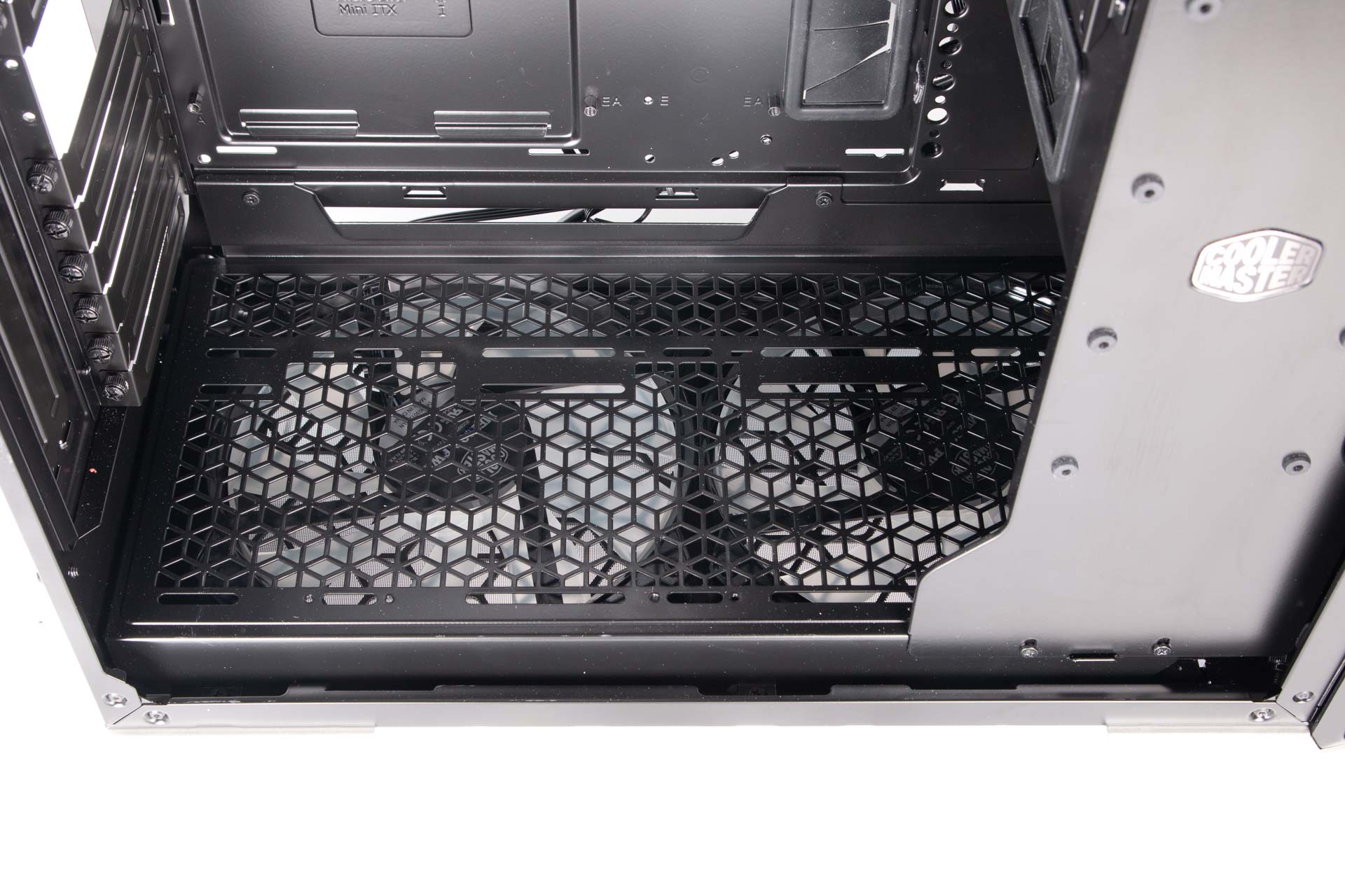 We ended up needing to remove the whole contraption, which is screwed in from both sides and removing the front panel made things a little easier, too. However, we do commend Cooler Master for making the effort here and it's even taken the trouble of angling the shroud to deflect airflow back into the chassis.