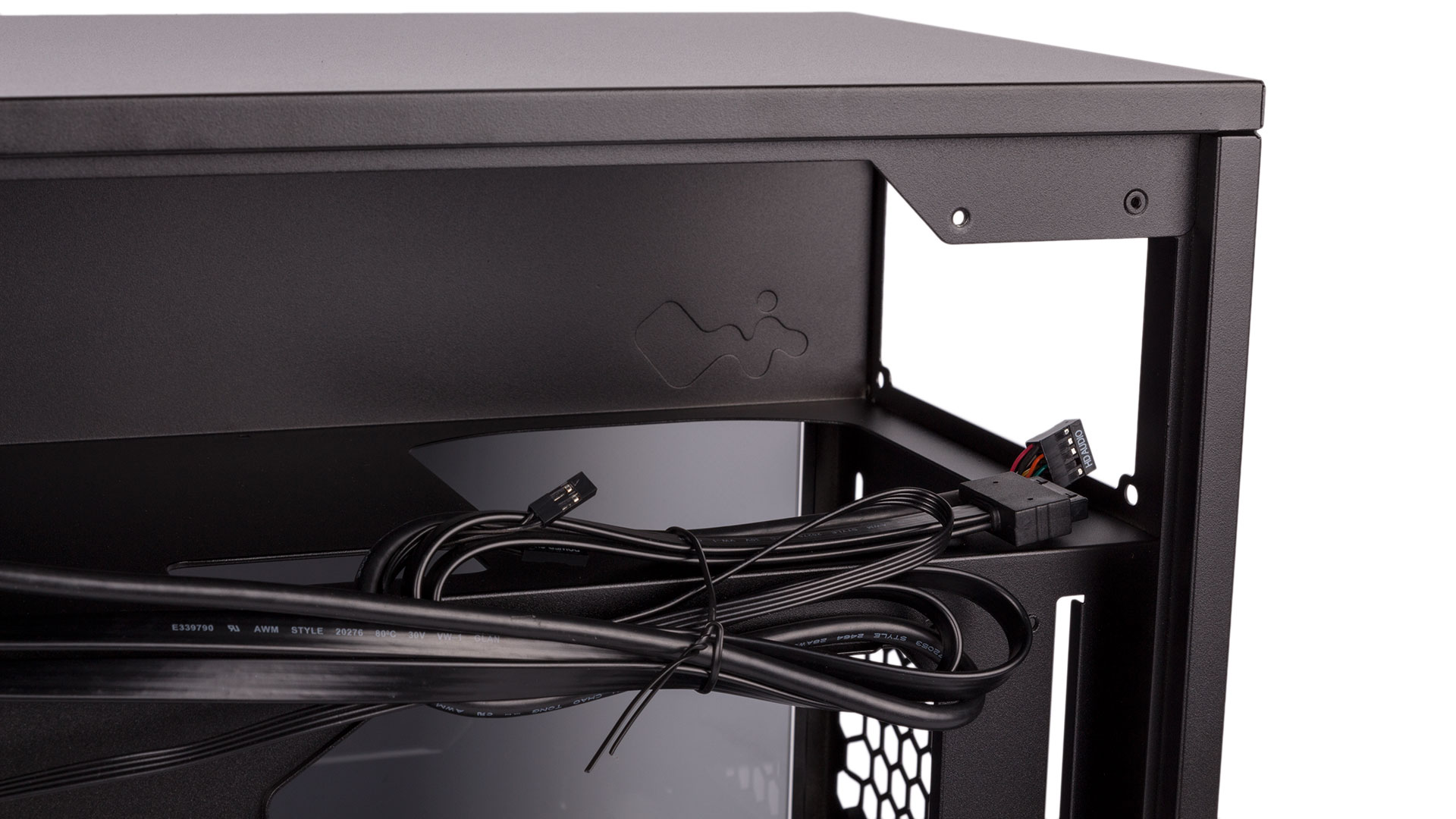 Looking at the case initially, we were dubious about its cable routing capabilities. There's a single routing hole that directly links the top and bottom chamber, and a few smaller ones to the side of the motherboard. These aren’t shielded with grommets, either, although that’s an understandable omission given the cost. That said, when it actually came to building, we had very few difficulties or issues. You don’t get fancy Velcro cable ties, but there’s a healthy amount of room behind the motherboard and up top as well as a good amount of zip ties and anchor points. The PCIe power and front panel audio cables were on show a bit more than we’d have liked, but we still ended up with a satisfying, clean build without much effort.