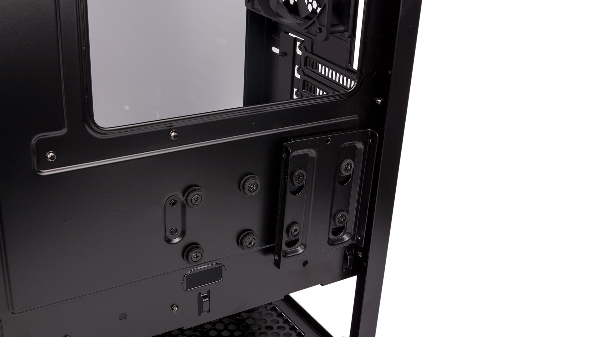 There is also a single dedicated 2.5” mounting tray secured to the rear of the motherboard tray. As ever, this uses Phanteks' lovely Drop-N-Lock system of rubber grommets to lock the tray in place. A second set of grommets allows you to add another tray, but you'll need to buy this separately. The case is a little limited in default drive support, but honestly most users probably do only need one SSD and one or two HDDs these days.