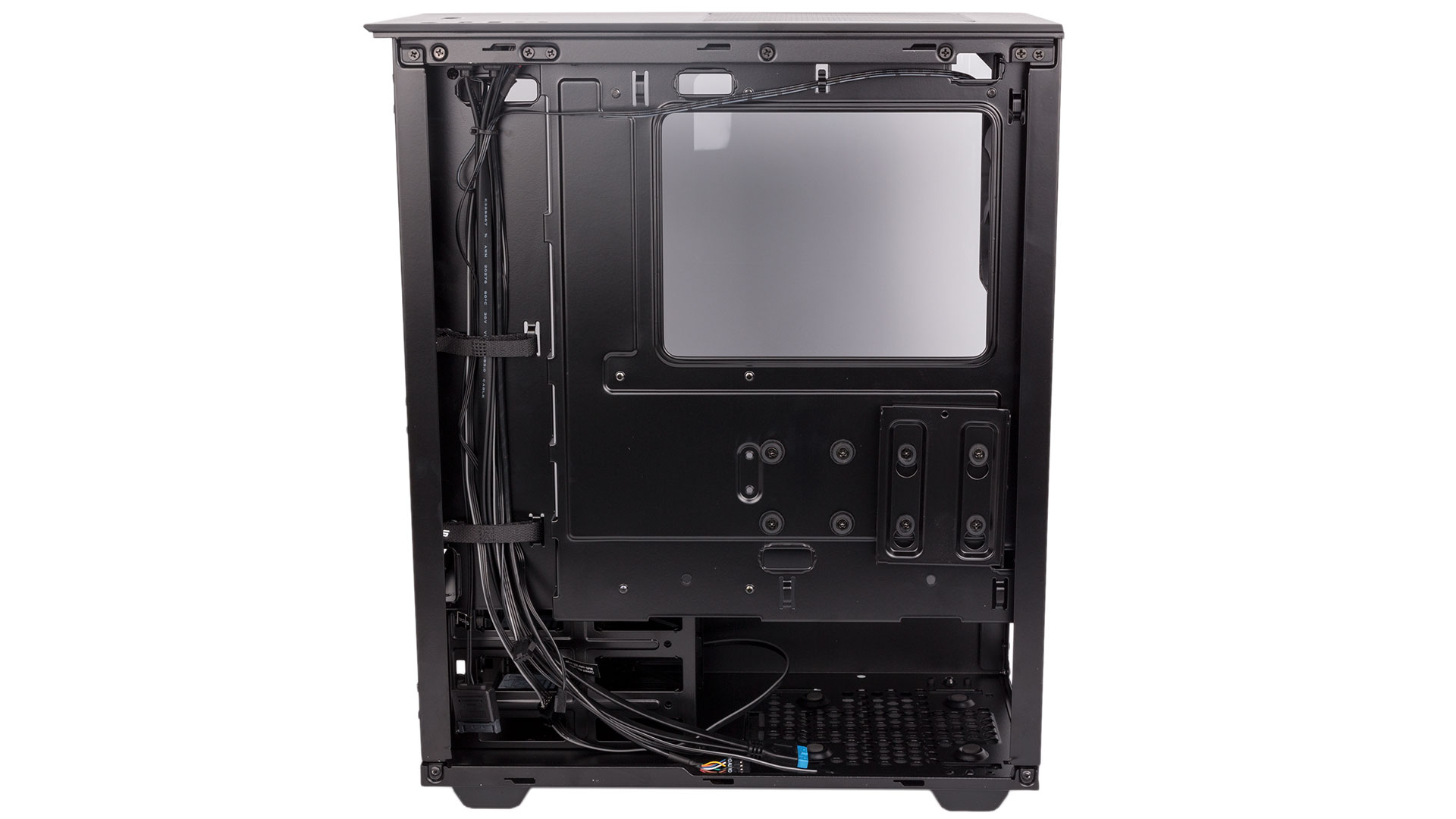 Phanteks frequently impresses in the realm of cable routing, and even at this £55 price point it's no different. There is a deep cable channel at the front of the case with a couple of Velcro cable ties to keep everything in place and easy access to the main I/O area of your motherboard and the lower chamber. Additional holes above and below the motherboard mean that no single cable should have too much length on show, and it's easy to work with.