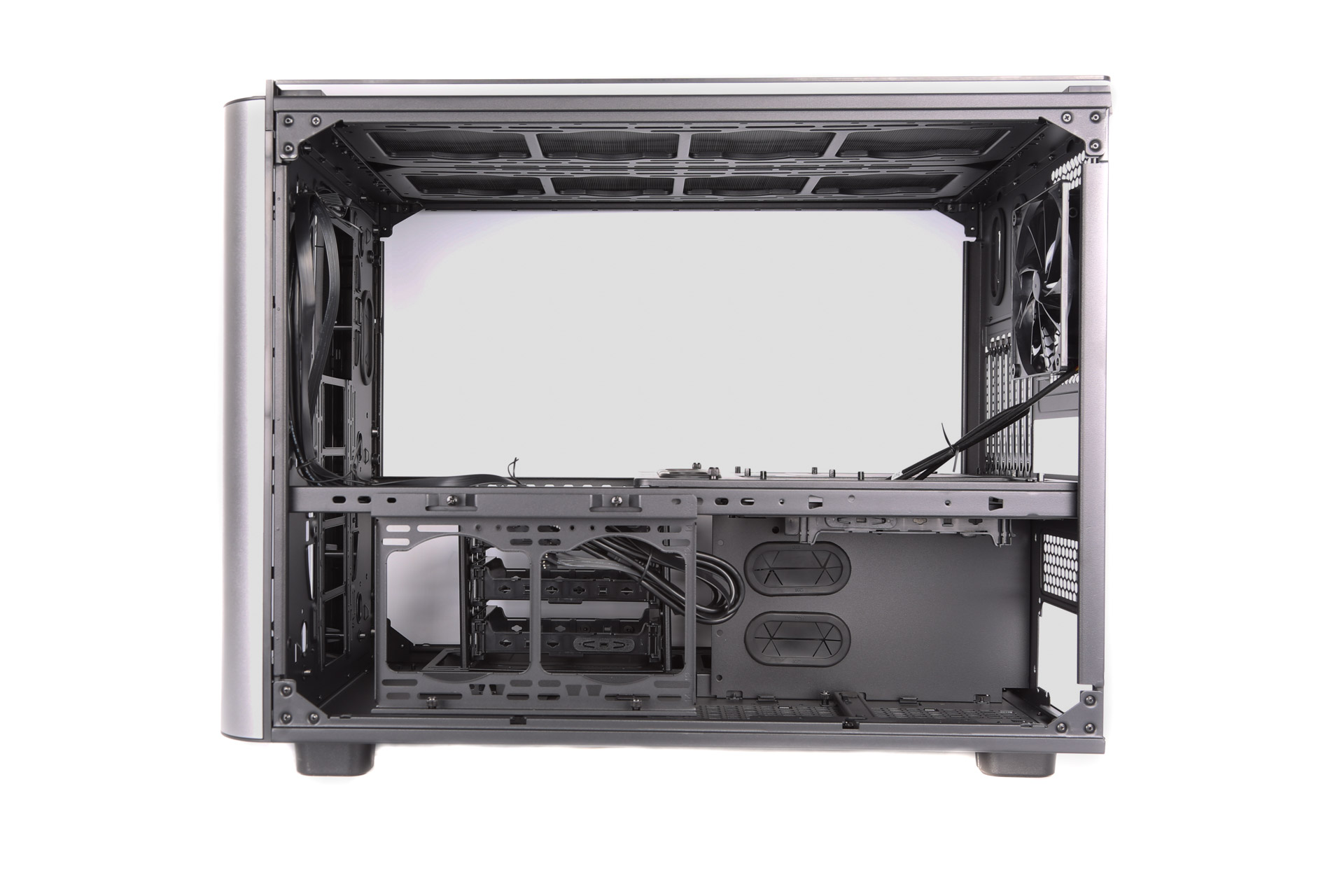 Interestingly, there's also a set of side fan mounts that can play host to a 480mm or 420mm radiator, although there's no intake vent here, so efficiency will likely be rather poor, plus you'll be venting back into the case. The base has yet more fan mounts and space for up to 480mm or 420 mm radiators, although we should add that you can't use the side and base for larger radiators, as the PSU needs to sit in one of those areas, having as it does the ability to switch sides. If you decide to go with air cooling, you'll have few problems here, and we had to laugh at the instruction manual, as it offered a warning notice that you 'only' get 250mm of CPU cooler clearance. We'd like to see the heatsinks the designer has been using recently, as we haven't encountered anything much taller than 180mm for a long time.