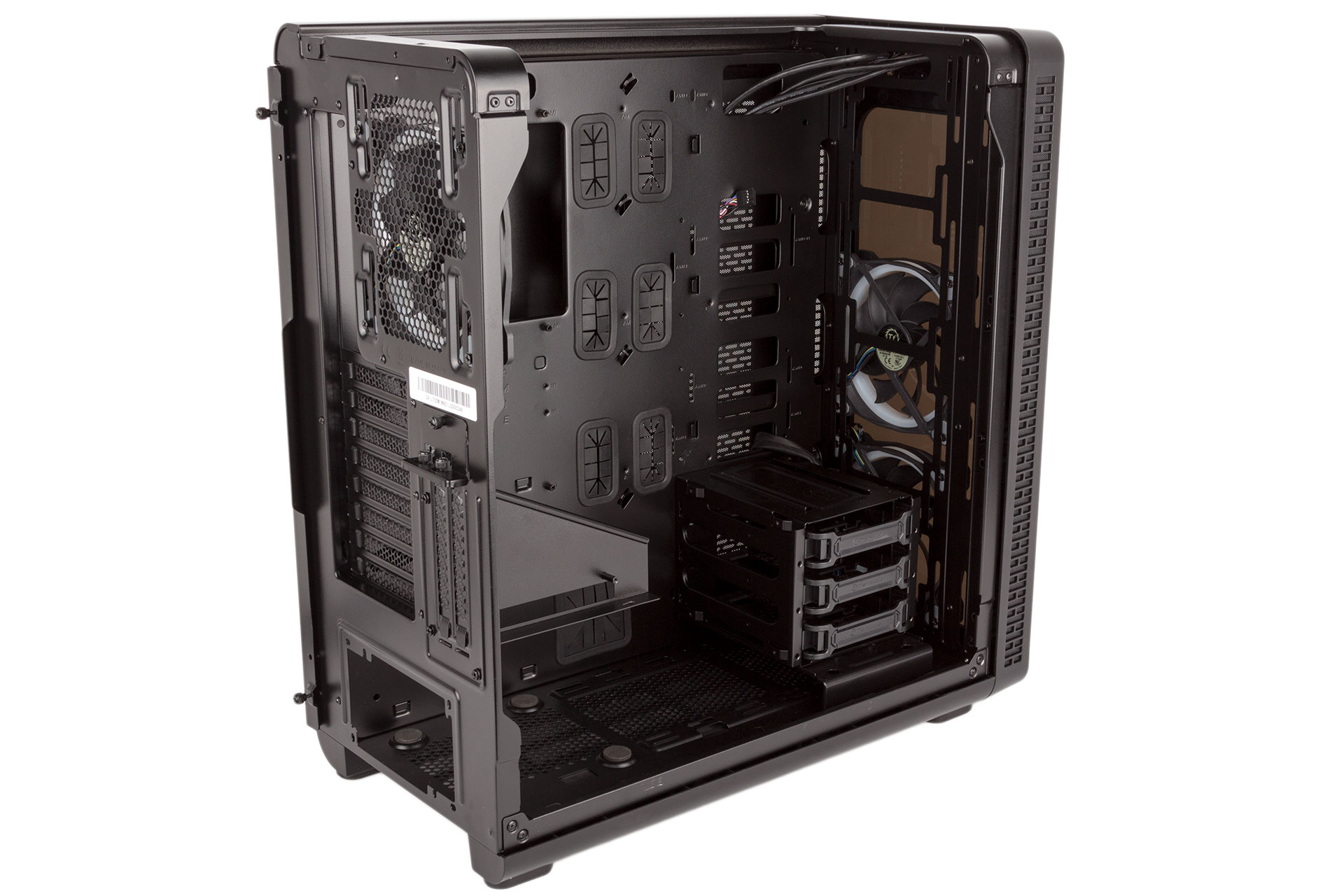 That said, we find it hard to believe anyone would need to add an extra cage to this case, as behind the motherboard tray there is room for a further four 3.5” drives or eight 2.5” drives (or a mixed combination) thanks to a quartet of removable trays, each held in place with just a single thumbscrew for ease of use.