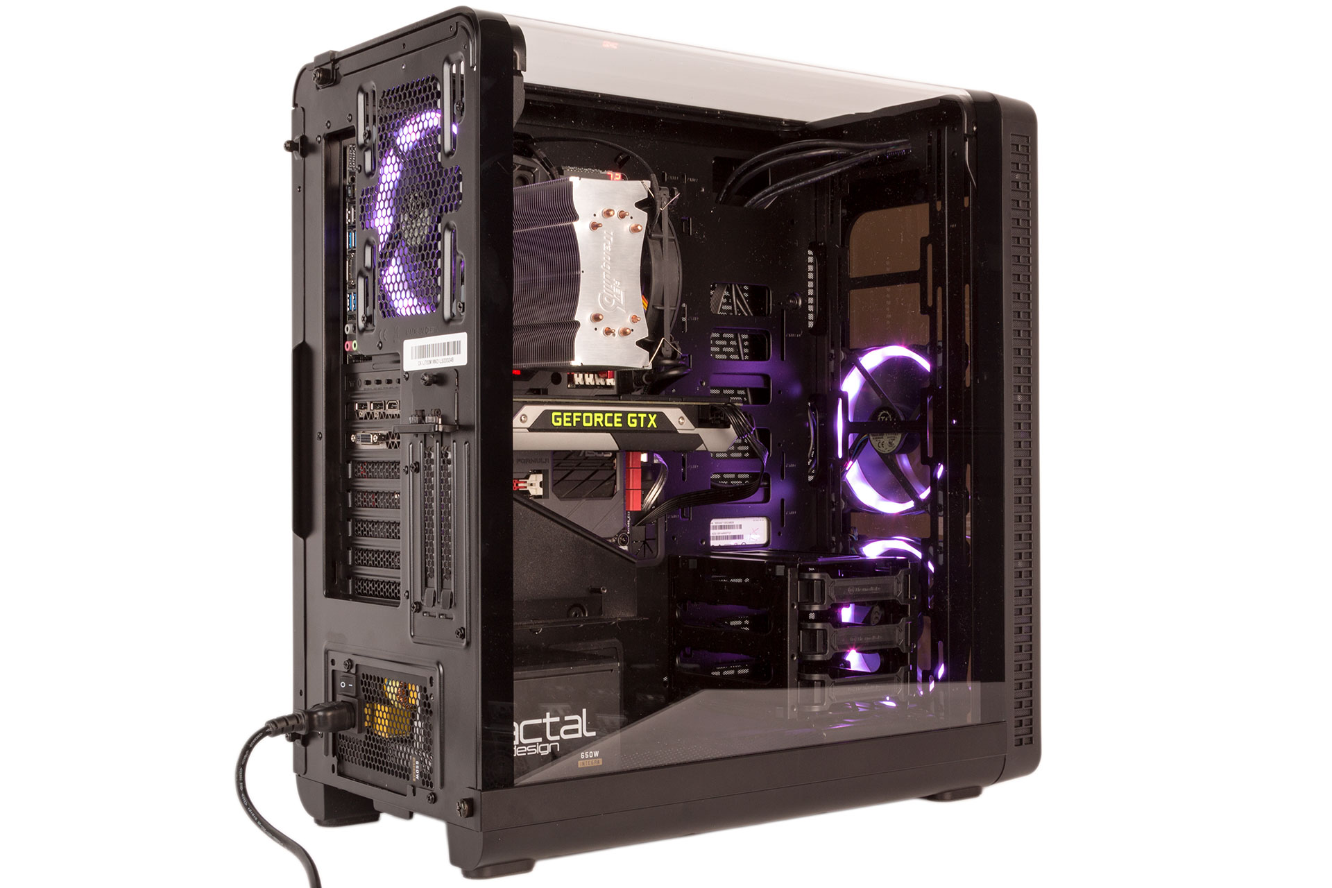 Despite multiple retests, we were unable to draw out a significant difference in temperature for either the CPU or the GPU between the high and low speed fan settings on the controller. This is a little puzzling since the airflow does actually increase noticeably. If we had to guess, we'd say the front fans are impeded a little too much by the solid front panel and that the closed roof is what keeps the CPU on the warm side. Also, two intakes and one exhaust creates positive pressure, so extra air from the front fans might be being lost through the porous side and bottom.