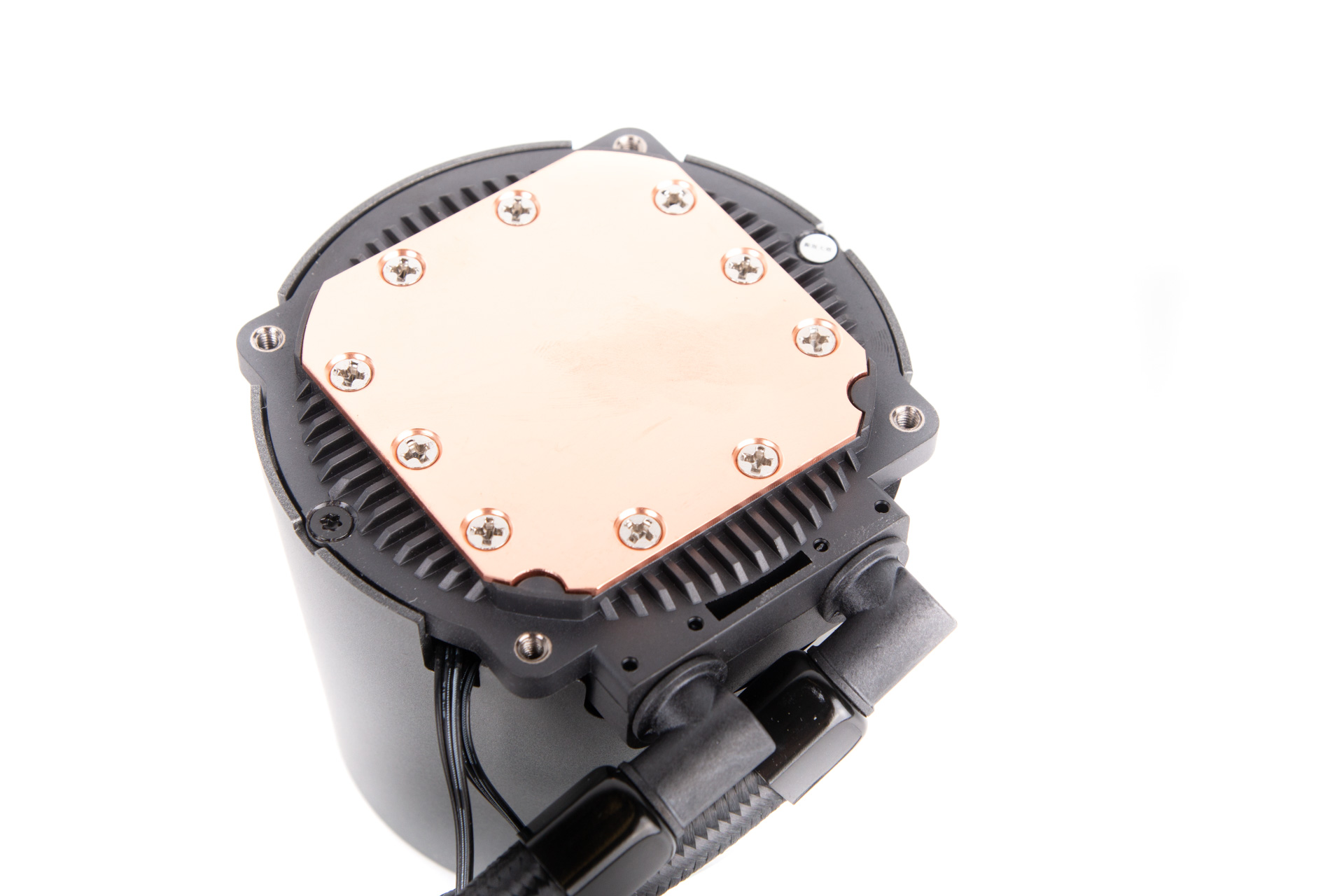 The contact plate appears large enough to cover the dies on a Threadripper CPU, if not the entire heatspreader, and it's certainly larger than those on Corsair's recent coolers. There's enough thermal paste included in the box for one application, possibly two for mainstream CPUs.