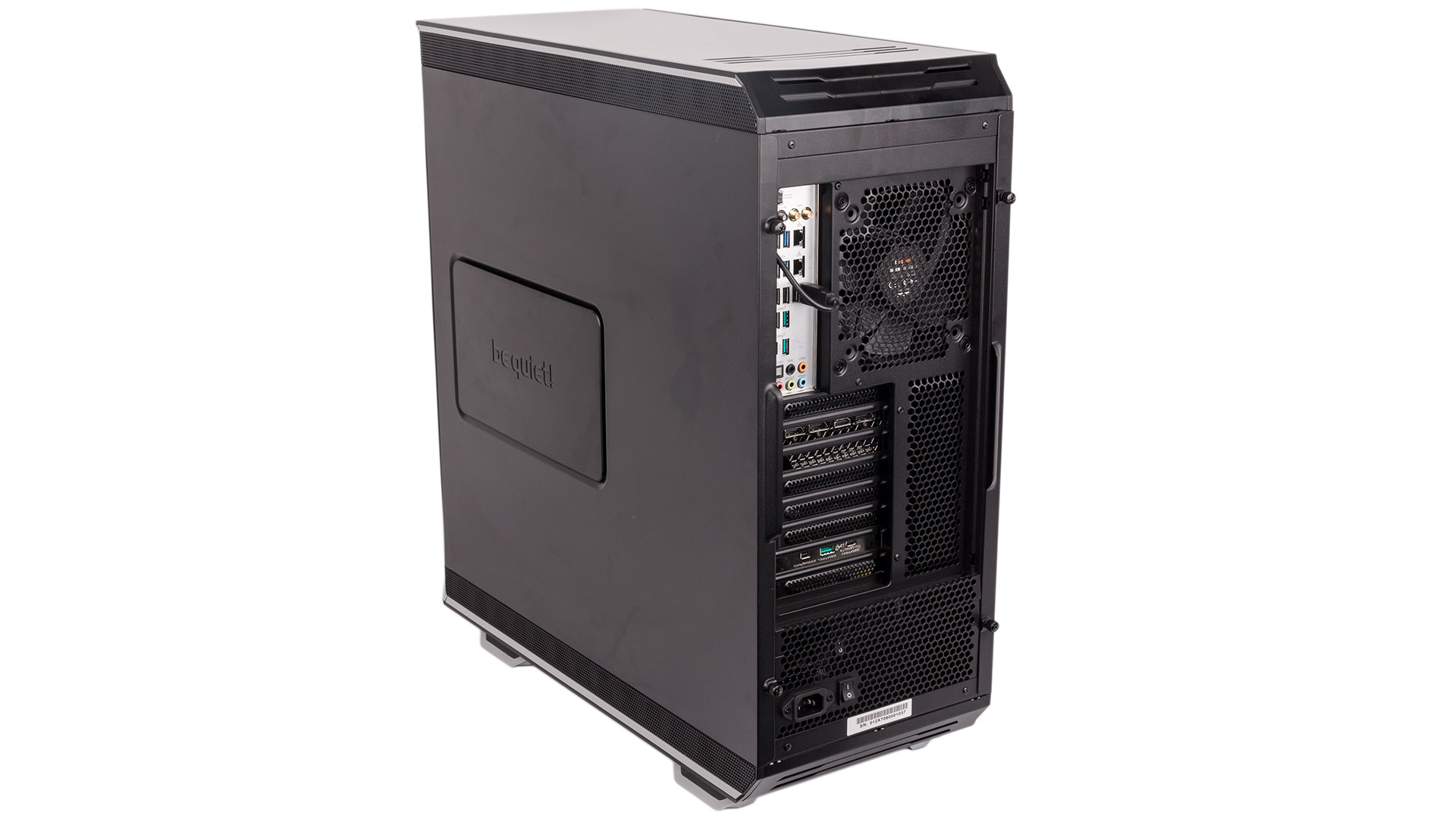 The Mayhem S Pro comes in a Dark Base 900 chassis, although Dino PC has plenty of other available choices on its website. We haven't reviewed this case, but a quick examination reveals it to be more than up to the task of handling a high-end build. You get full dust filter coverage, fan control for the three SilentWings 3 140mm fans (two front, one rear) and up to three more courtesy of the internal fan hub, and loads of options for adding extra storage and cooling. There's no window, but the subtle, understated look is one that's likely to appeal more to adults in a workplace than gamers at home.