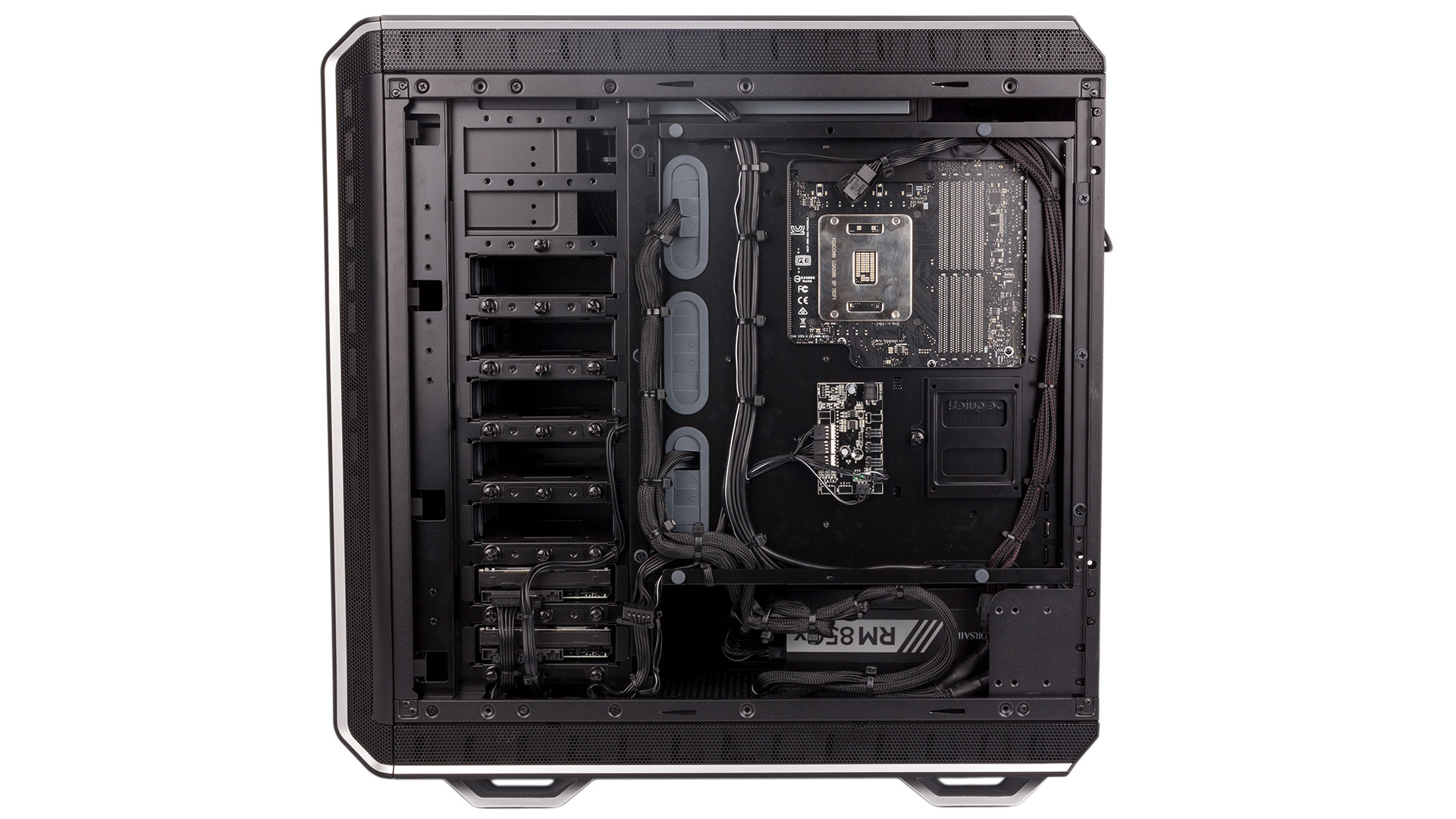 The RM850x PSU from Corsair will supply easily enough juice. It's fully modular, semi-passive, has an 80 Plus Gold rating, and comes with numerous extra connectors, so no complaints here.