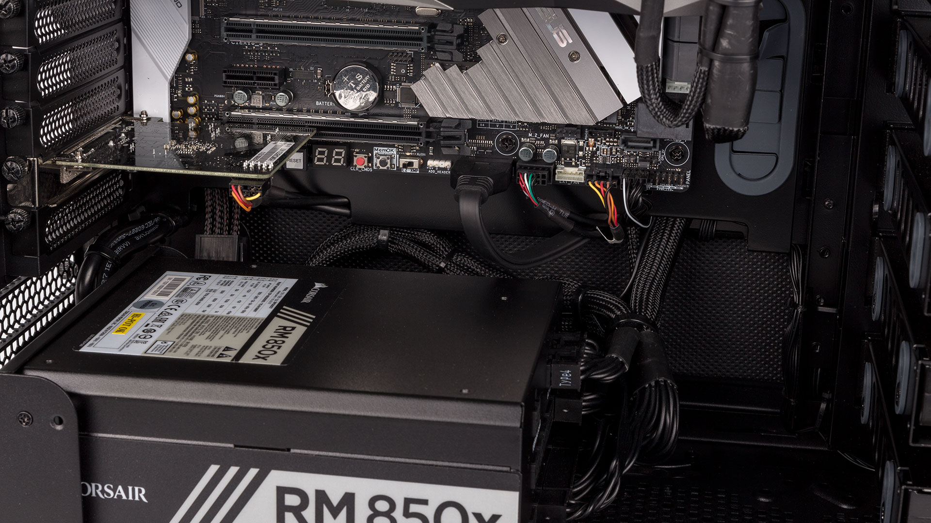 Dino PC's cabling work is admirable, and both the main cavity and the area behind the motherboard tray look neat and professional.