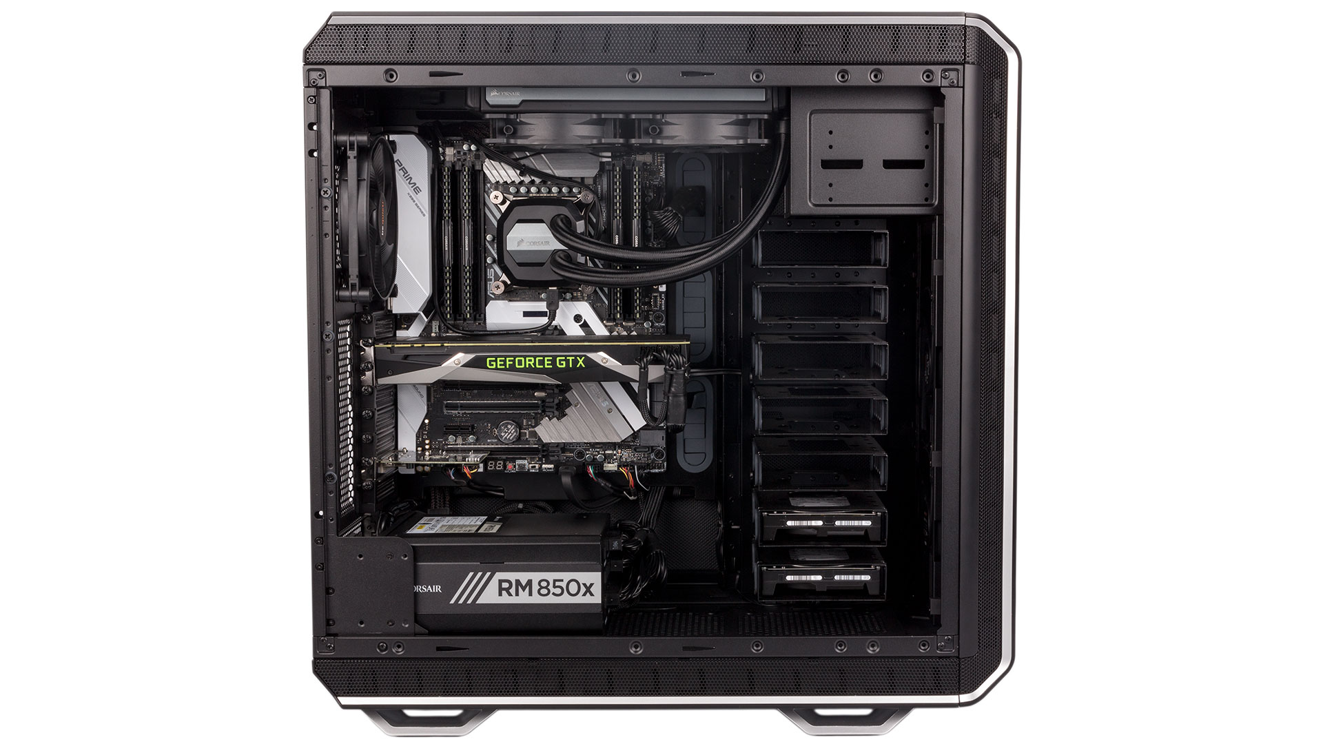 The GTX 1080 Ti Founders Edition is a solid card through and through and will churn out exceptional frame rates at any resolution up to and including 4K. It could also be great for offloading certain workloads, although it lacks the unlocked double-precision performance of Nvidia’s Quadro cards. Customers will not receive this card, however, as it's now out of stock; the MSI GTX 1080 Ti Aero is the replacement choice. Either way, we still think Dino PC could have selected one with a better and quieter cooler, as there’s easily room for one. Thankfully, the online configurator has Asus’ excellent GTX 1080 Ti Strix as an option for £120 more, which you can easily save by selecting a less insane motherboard as well.