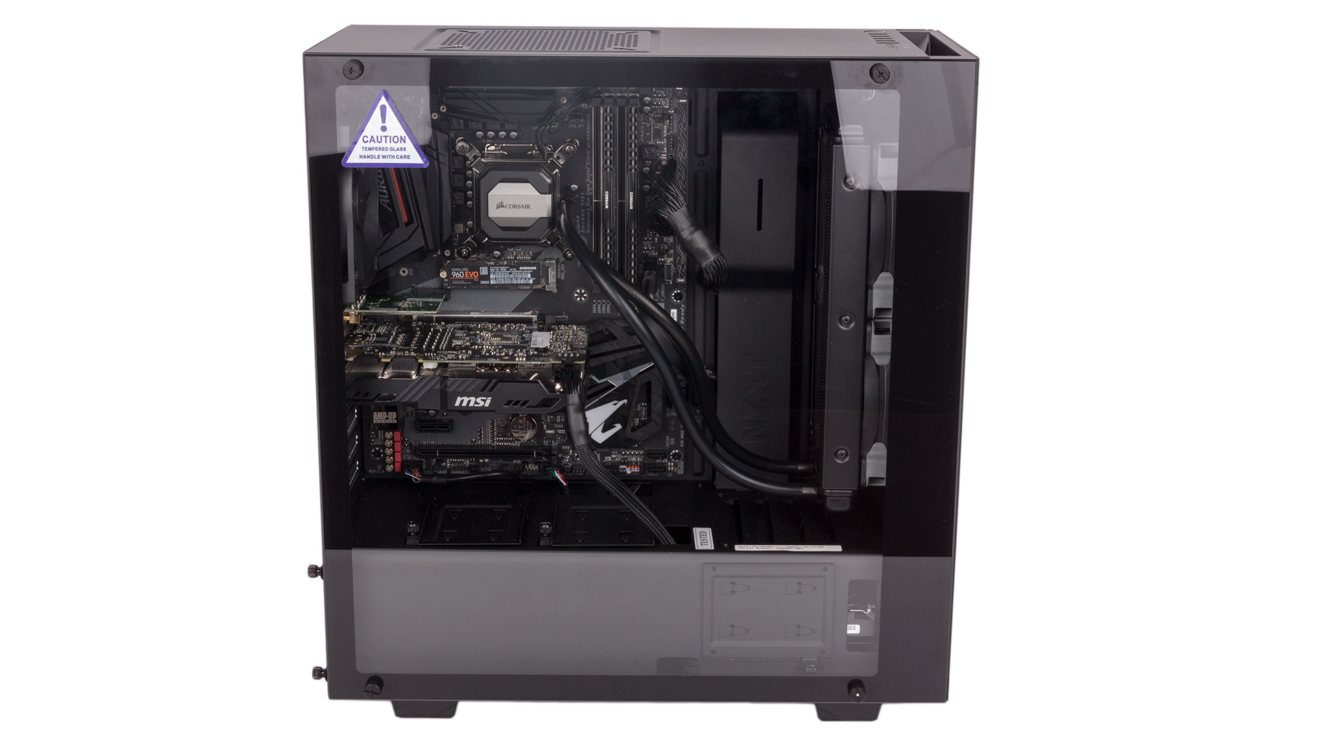 The overclock is stable, the system is professionally assembled, and it even looks the part too thanks to unified, single-colour lighting across the motherboard, which is easily changed if you want. In fact, we can't really think of anything we'd change here in terms of how this set of hardware is put together other than perhaps having the HDMI cable routed properly and saving the OC profile. Nonetheless, with six cores and 12 threads running at 4.8GHz, a GTX 1070 capable of smooth ultra-detail 1440p gameplay, and an SSD that can transfer at over 3GB/s, the Elite 109 is a great system at a fantastic price.