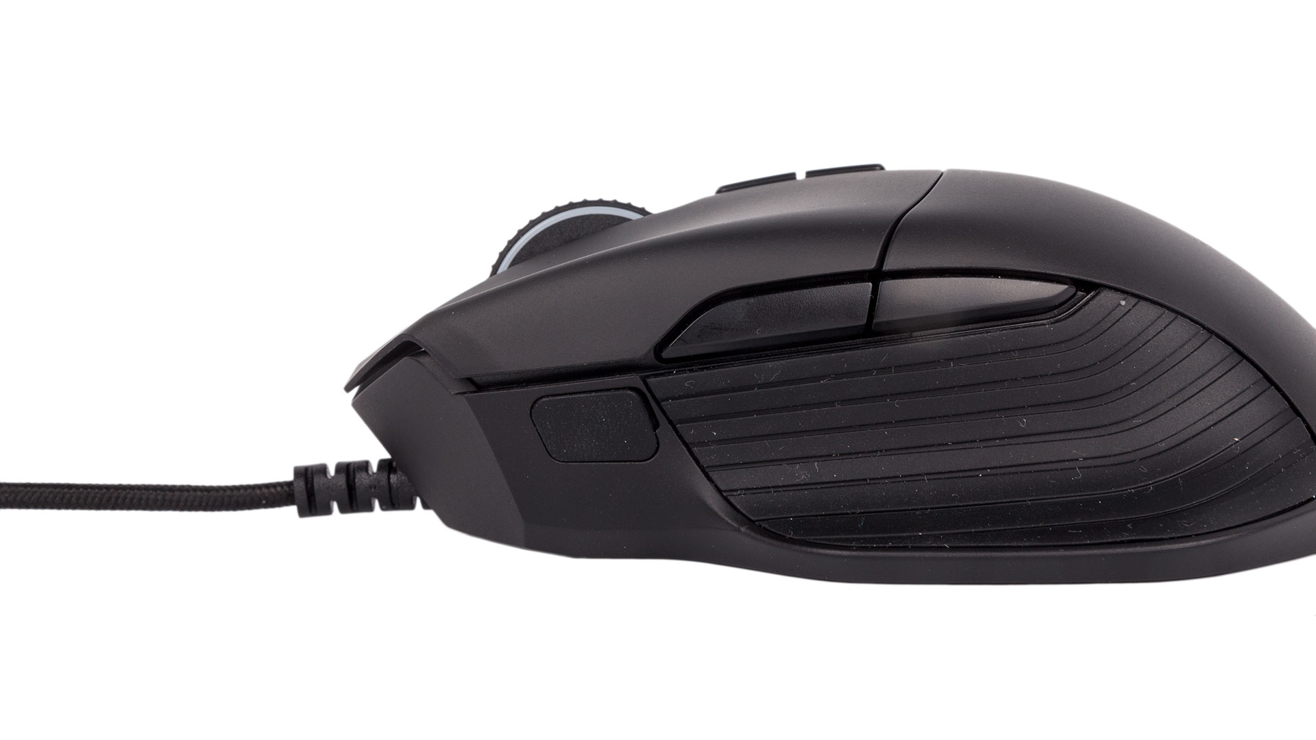 Another advertised feature is the DPI clutch. This is nothing new, but it is welcome on an FPS mouse. Basically, it allows you to temporarily lower the DPI while the button is held down, which means you can instantly and intuitively get higher accuracy when sniping, for example, in order to more easily line up the perfect shot (it can also be handy for precision work in Photoshop or similar). The button is positioned so that it sits at the tip of your thumb for near-instant access. I found that my thumb had to stretch just a little bit more than I’d have ideally liked, but it was easy and still comfortable to adjust my grip to accommodate for this. The default button can be easily swapped out for a shorter one if you have longer thumbs or even a blanking bit of rubber if you don’t want to use it at all. The other two normal thumb buttons have a light, crisp action., and they’re easy to reach.