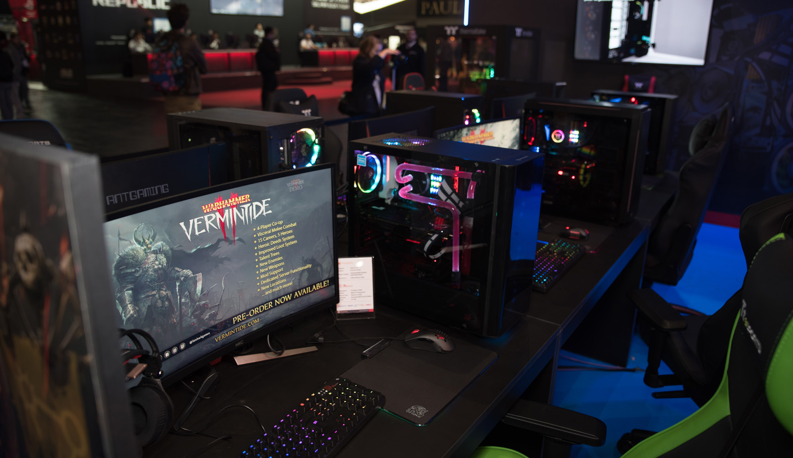 Across from the LDLC stand were Infomax and Corsair, rocking suites of demo PCs and live gaming feeds.