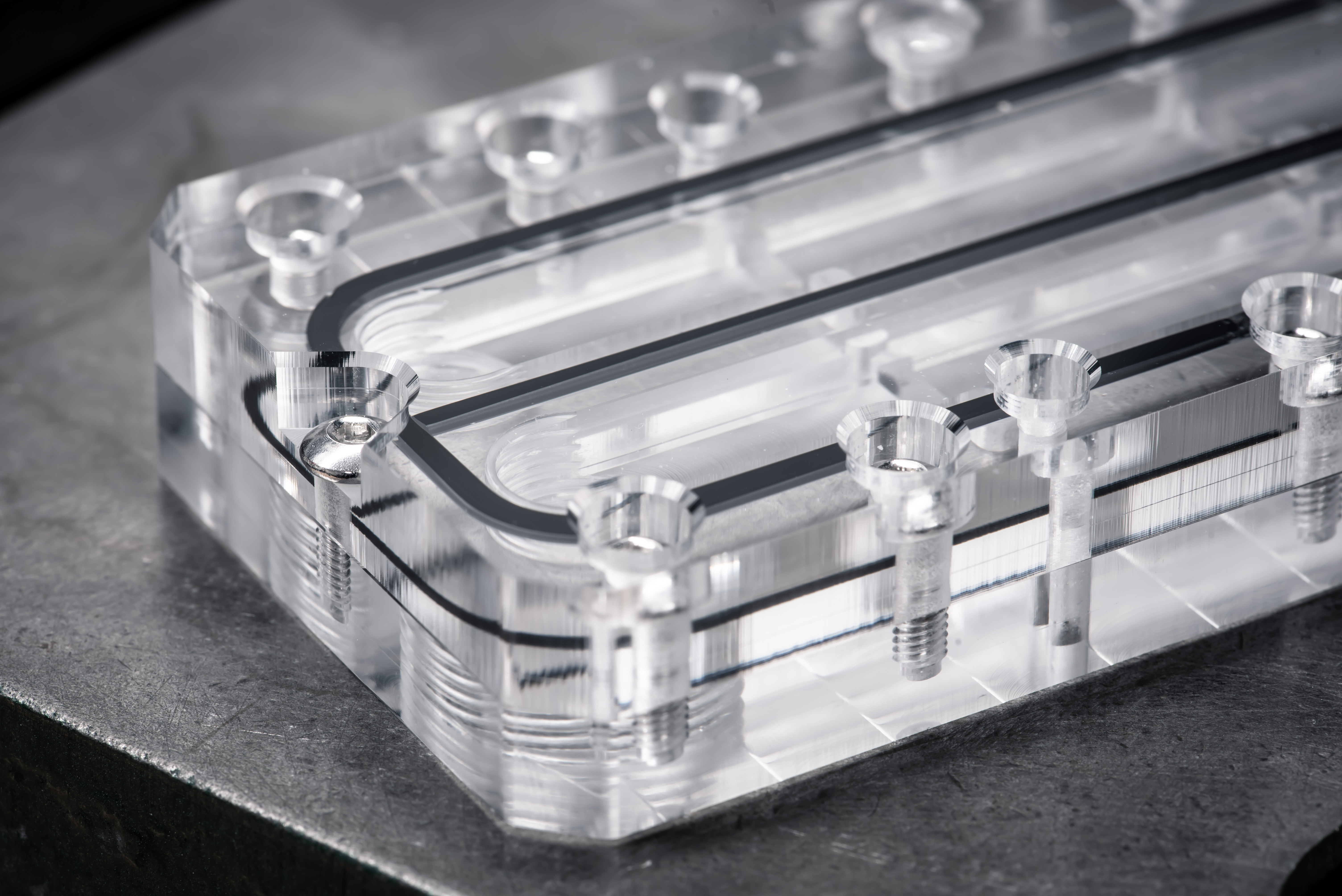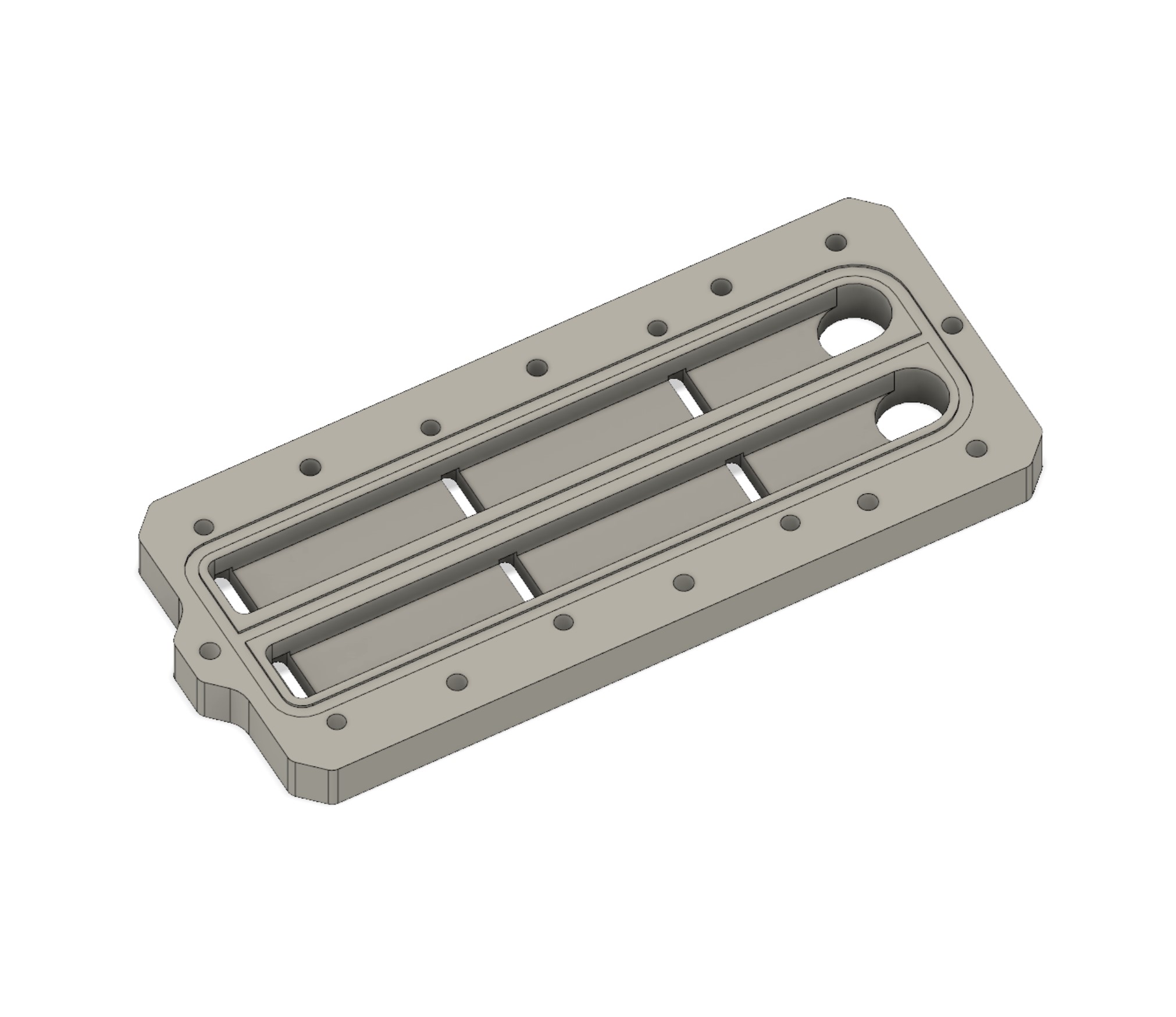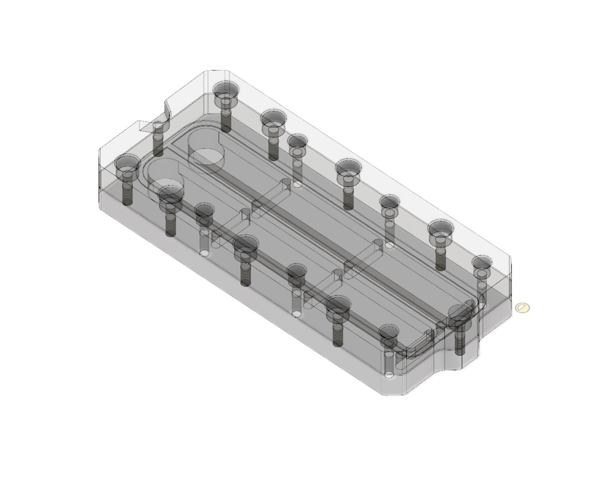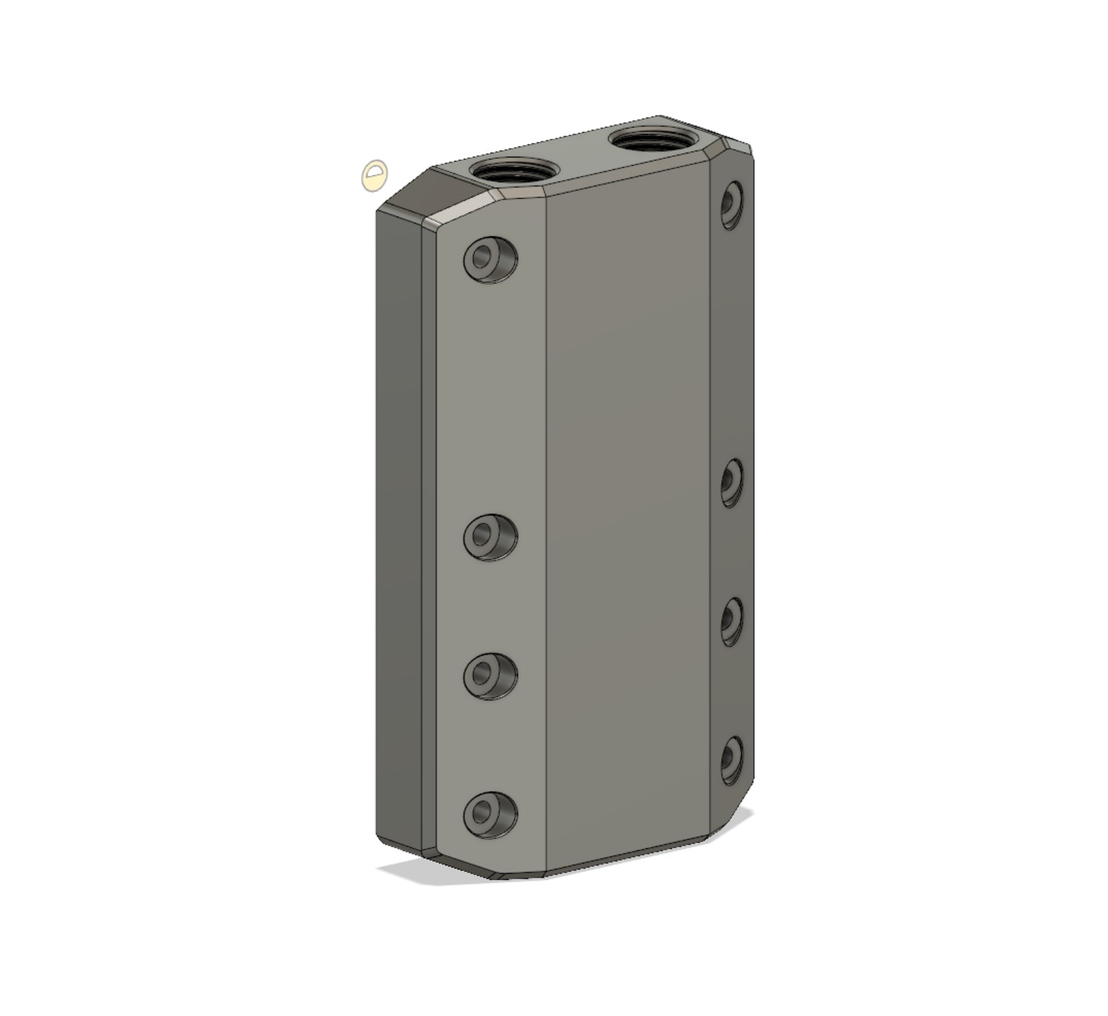 As with the larger blocks, I went with a 2mm o-ring for the interior sections, for this I used a 2.2mm-wide channel cut to a depth of ~1.3mm. The double-sided OPs were handled via the super glue method and located with pins. Tooling wise, I tried to keep things simple, using the 14mm polished edge radius mill for facing, followed by a 2mm single flute for the o-ring channels. The main channels were roughed with a 6mm single flute and then finished with a 4mm polished edge single flute (the top corners are a 2mm radius, so I couldn't use the 6mm). Thread milling was handled with a 2mm Datron thread mill cutter along with a Whitworth 6mm thread mill for the G1/4" ports.