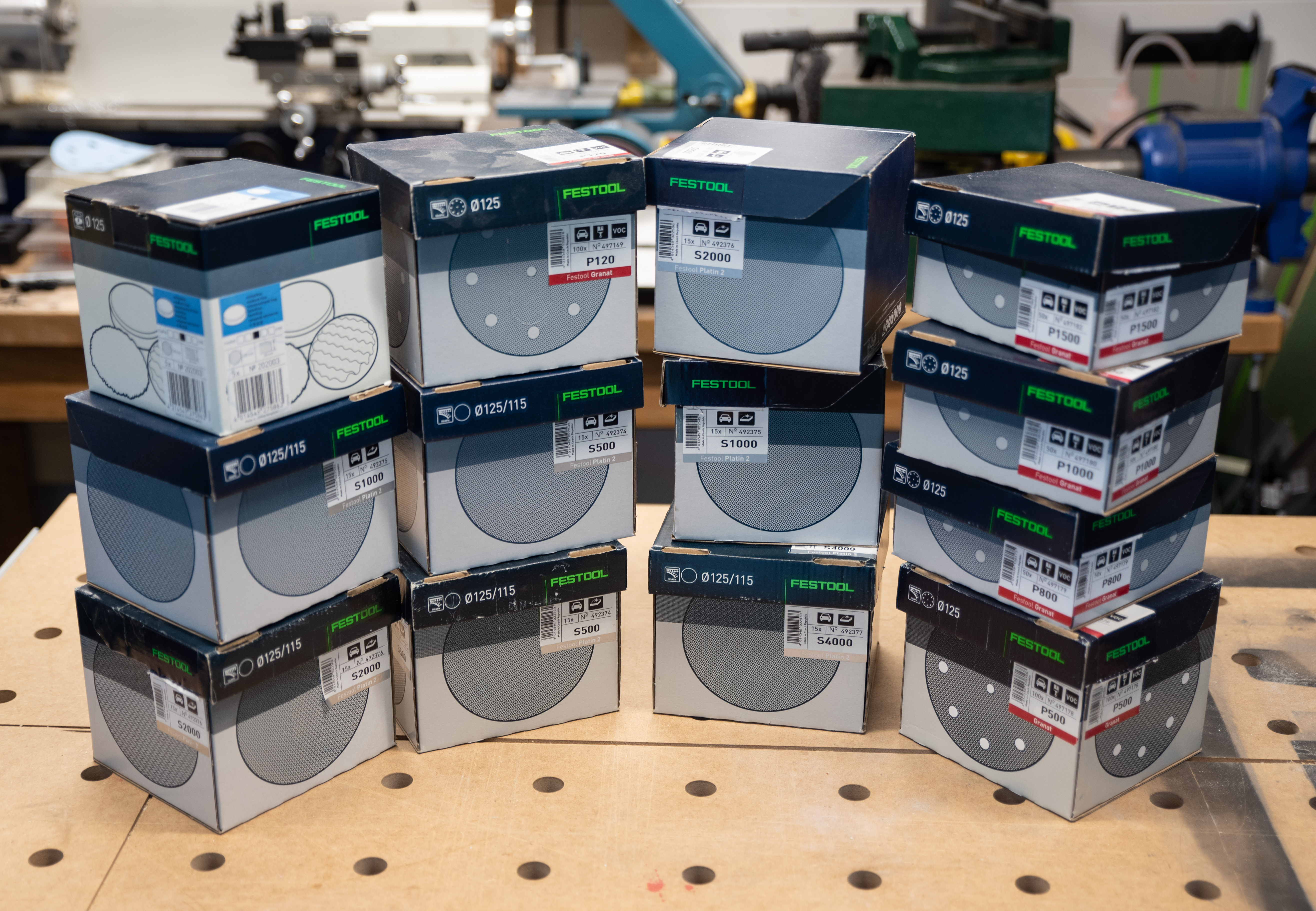 The ones I use are Festool's Platin II discs; a very good alternative is Mirka Abralon, which also conveniently is often sold in smaller packs. All you need to do is take a 500 grit pad, then gently sand down the tube. I like to begin by dragging along the length of the tube, and then doing a circular motion to even out the sanding pattern. If you can still see some faint marks from the 500 grit pad, lightly go over the surface with the 1000 grit one and all should be smooth.