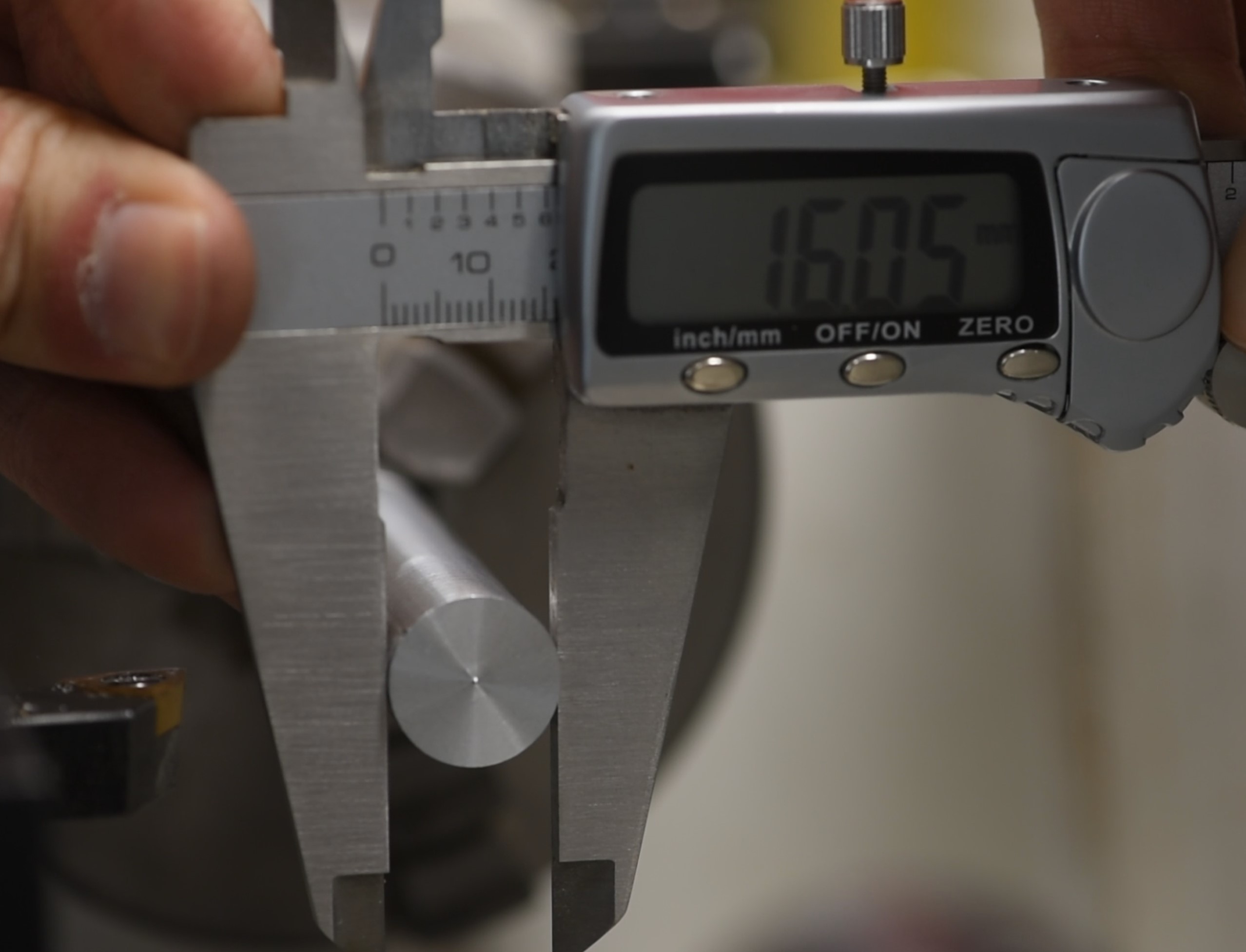After mounting in the chuck, the first thing to do was face the part in preparation for the later work. I then turned down a long section of the rod close to 16mm, this will help make sure everything is even in diameter and concentric later on, both pieces will be cut without removing the stock from the chuck.