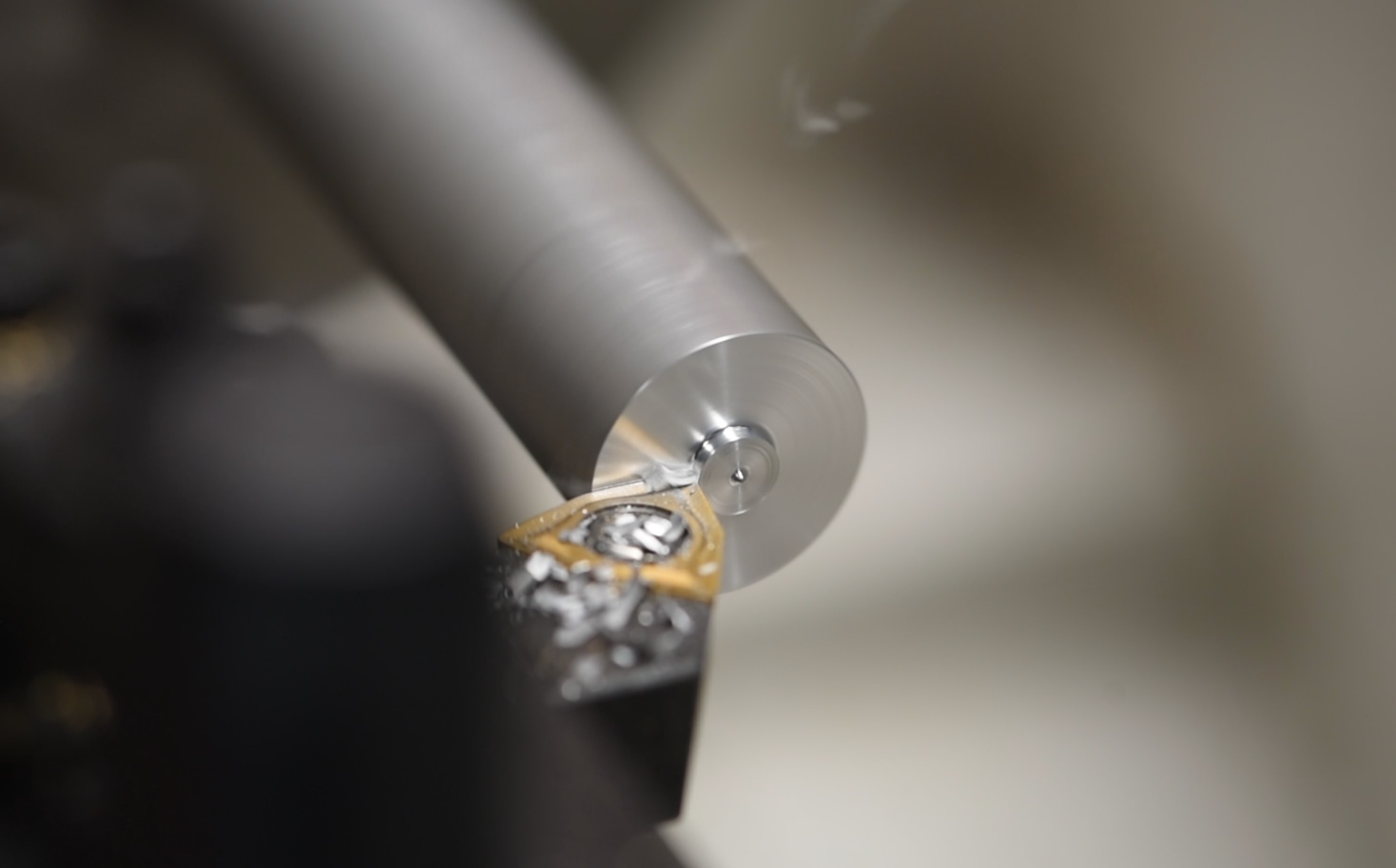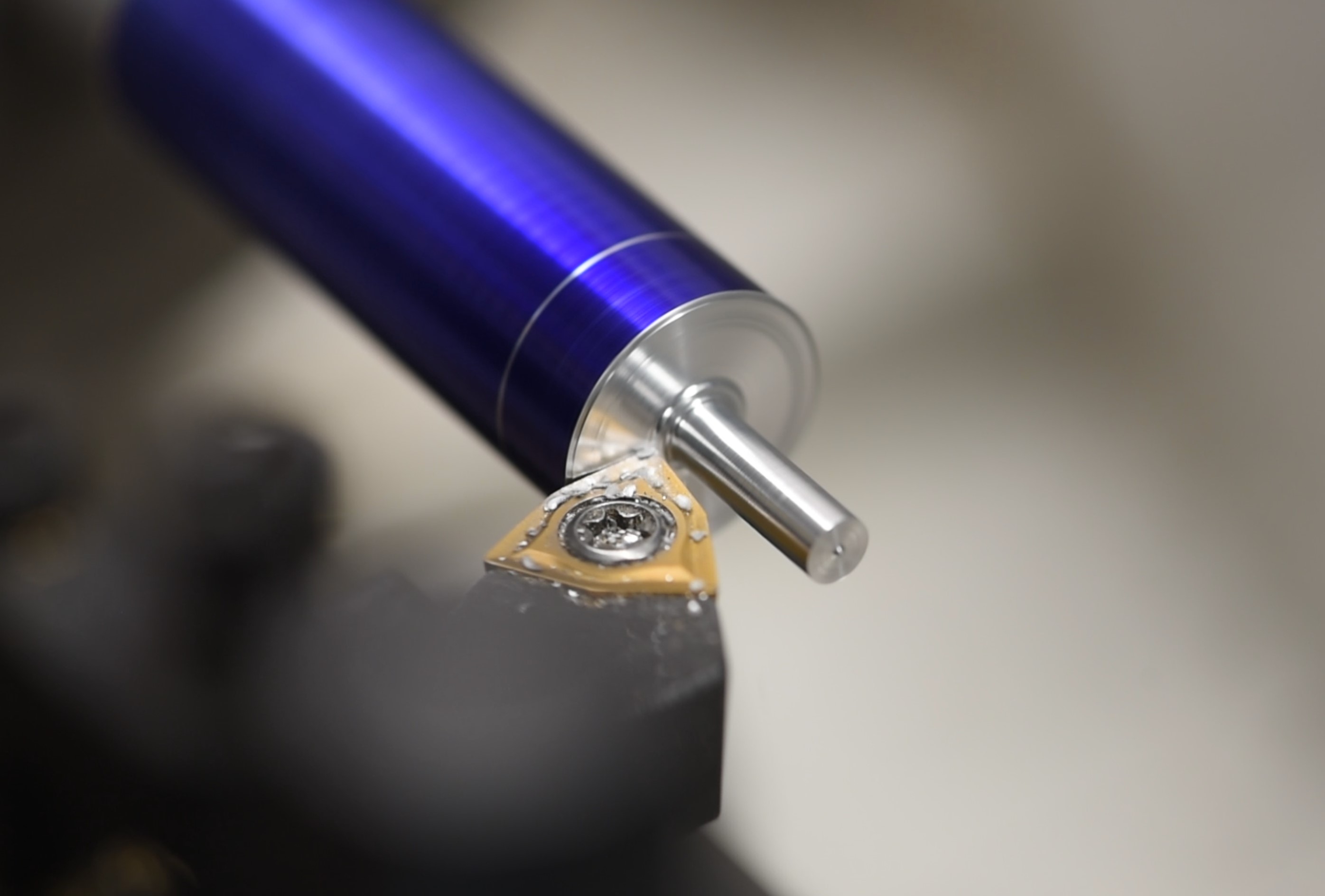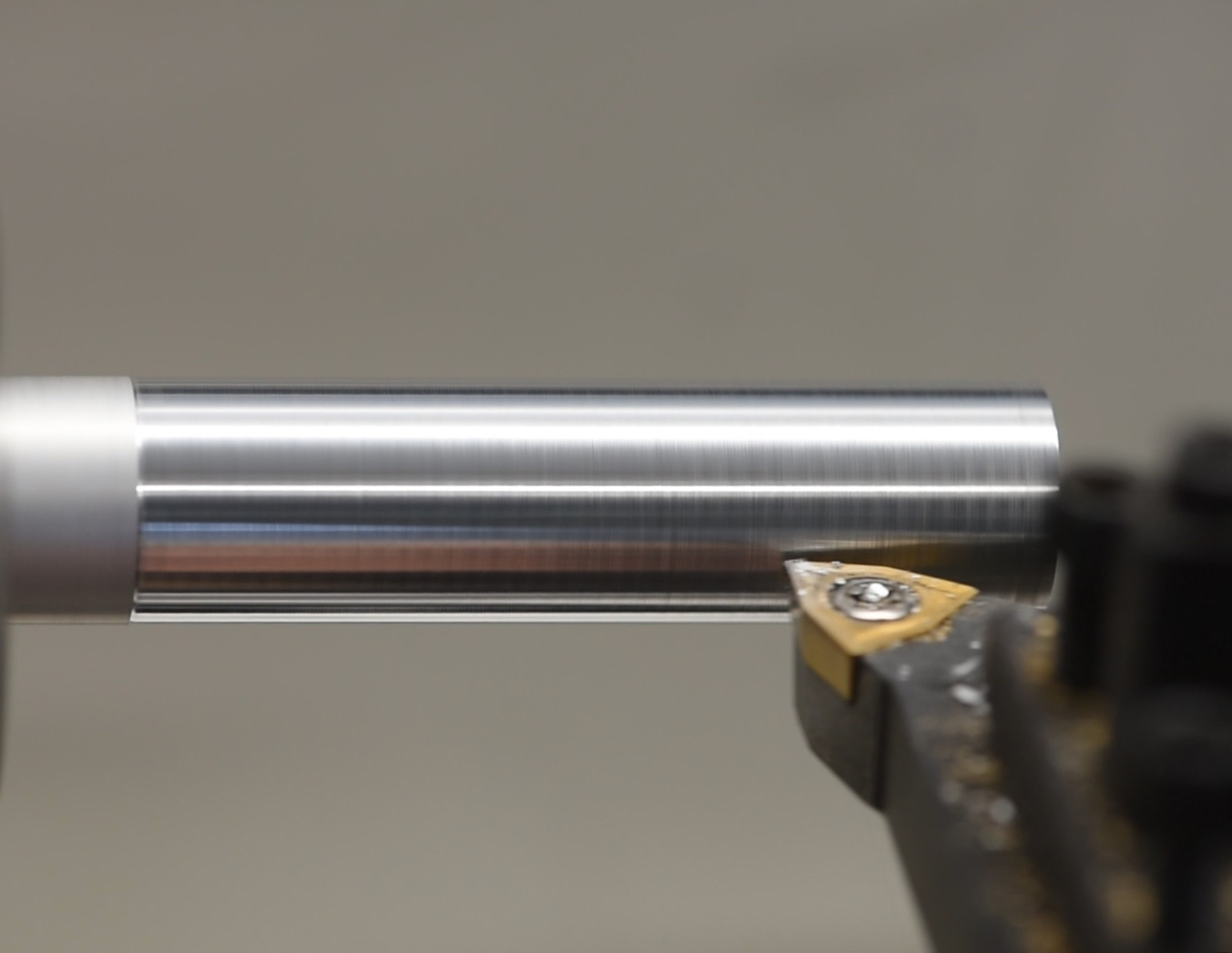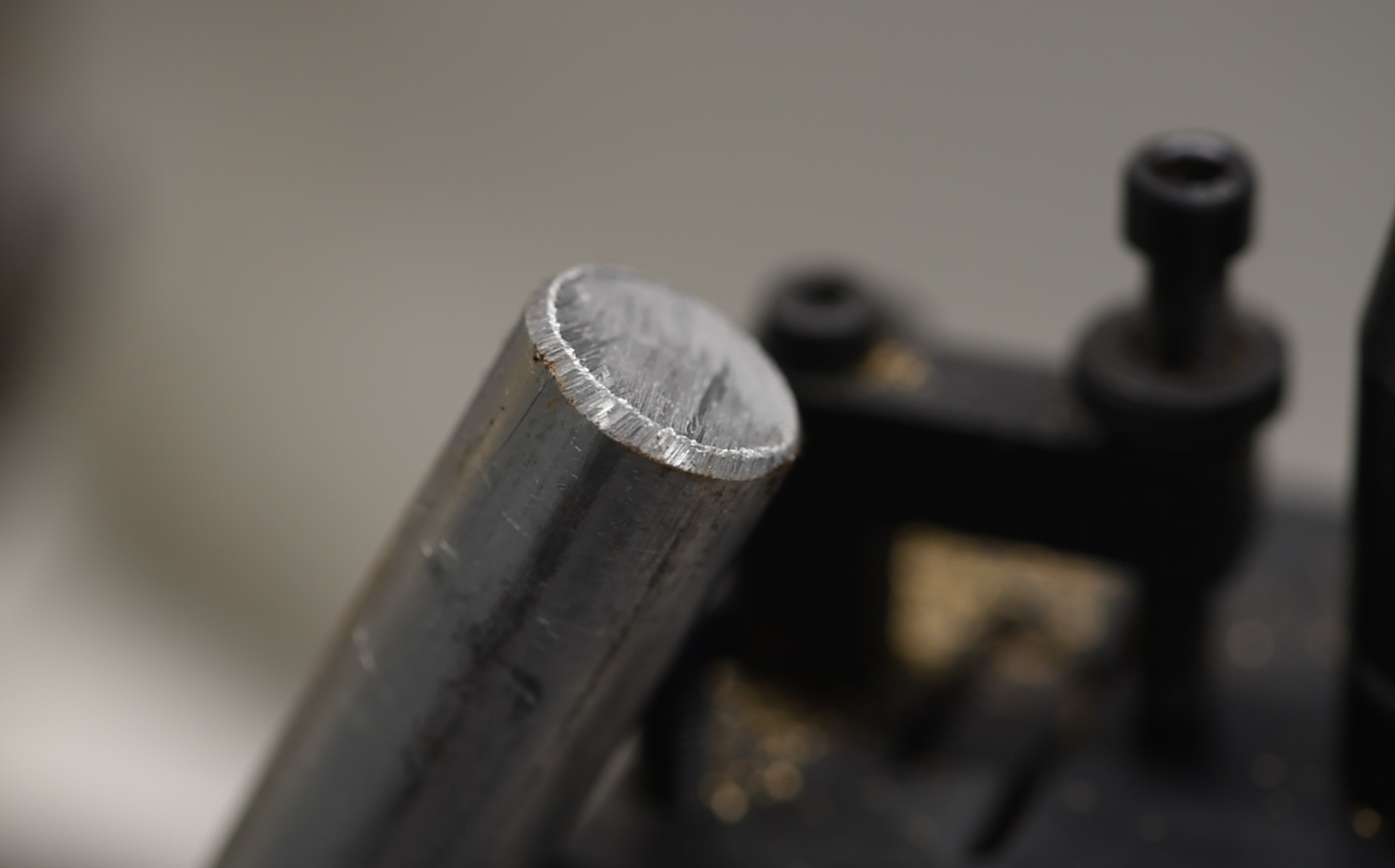 With the lines marked, it's time to start turning the part into shape, and this is where planning really comes into play. This particular part has a smooth, domed section and a long threaded zone. It's tempting to go and try making the dome first, but the issue there would be trying to hold the part later when you want to cut the threads. So to combat this, I decided it would be best to cut the threads first.