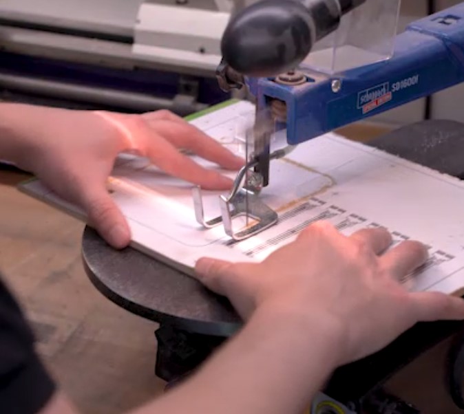 Rather than use the CNC or another automated process, it made sense to go back to basics to demonstrate how making a motherboard mounting tray itself is simple. Obviously the most basic way is just to plonk your board down, mark where the holes are and get cutting. This method though doesn't allow any means of planning ahead, not so good if you're making quite a few panels and want them all to slot together neatly later.