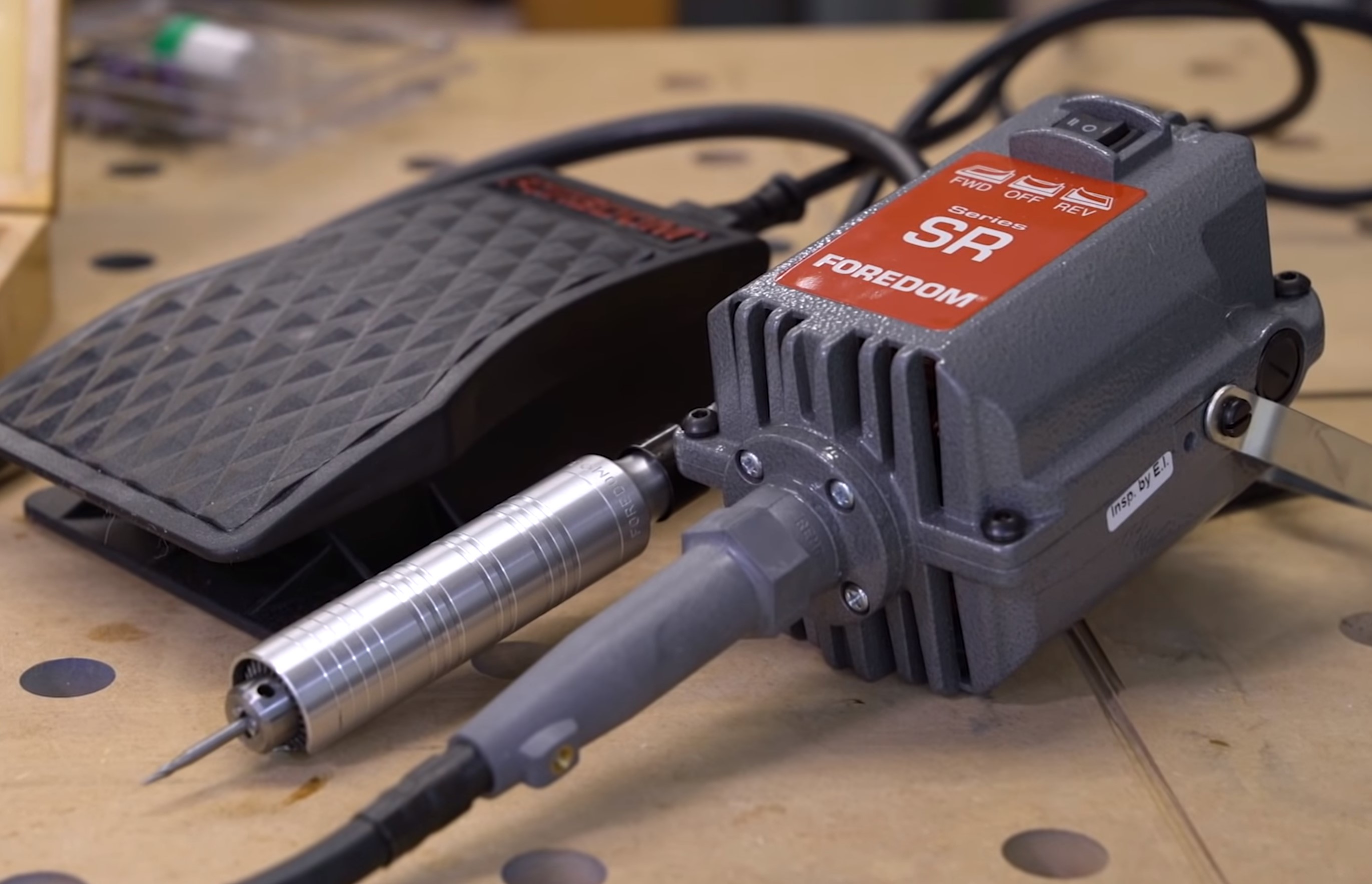 Foot pedal control takes a little getting used to at first, but it's really rather convenient. Having the option to change the speed on-the-fly without having to take your hands off the handpiece or your workpiece is a real boon, especially on more complex shapes where perhaps a one-speed approach is difficult. I like this a lot for polishing plastics or using tiny burrs; it makes controlling the finish much easier.