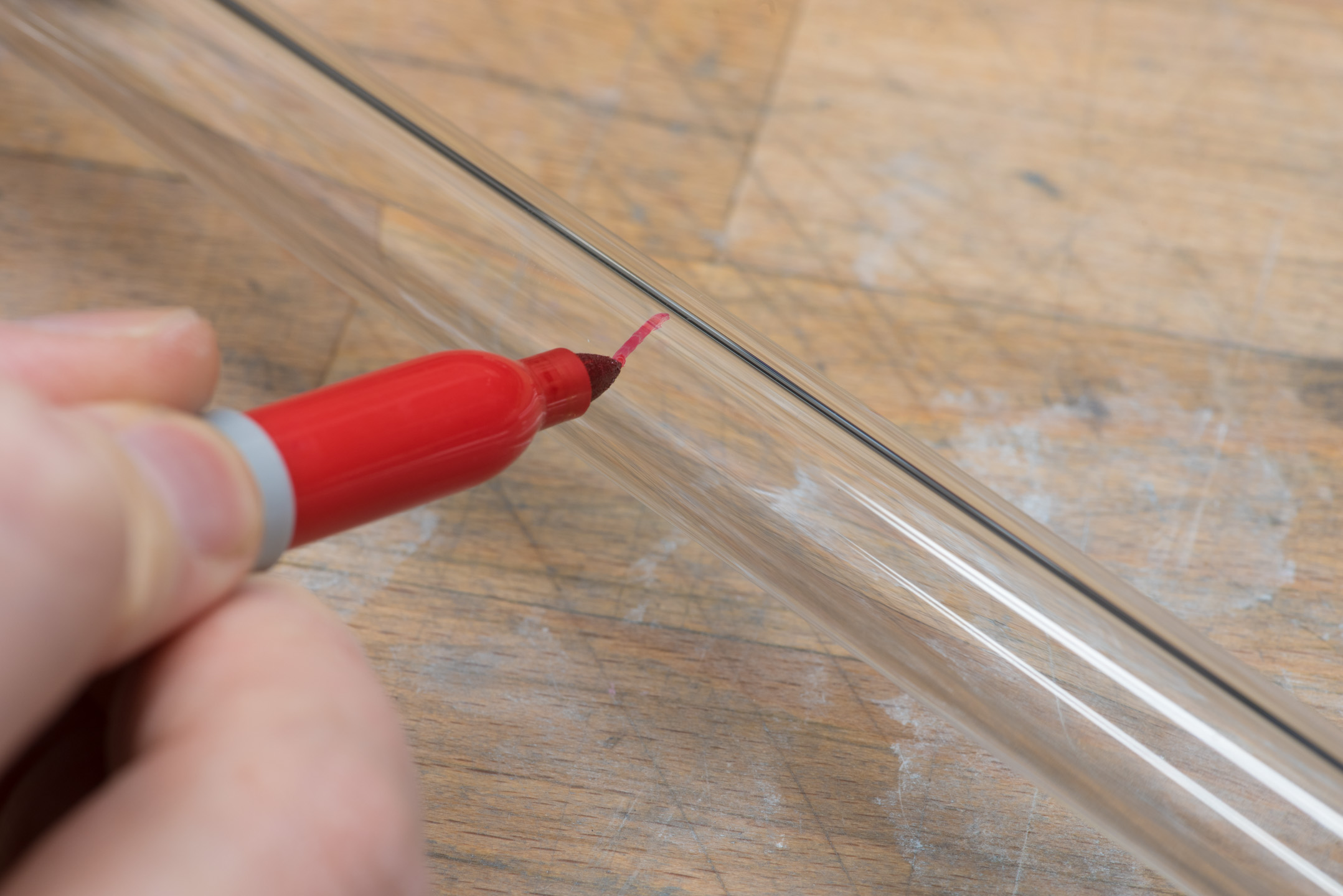 Don't press very, very hard, however, as the tube can spontaneously shatter once a mark has been made and a flaw introduced, from which a crack can propagate. It's worth noting that you can only use this method for longer tubing segments, as scoring too close to the end of the tube can cause the whole piece to crack instead.