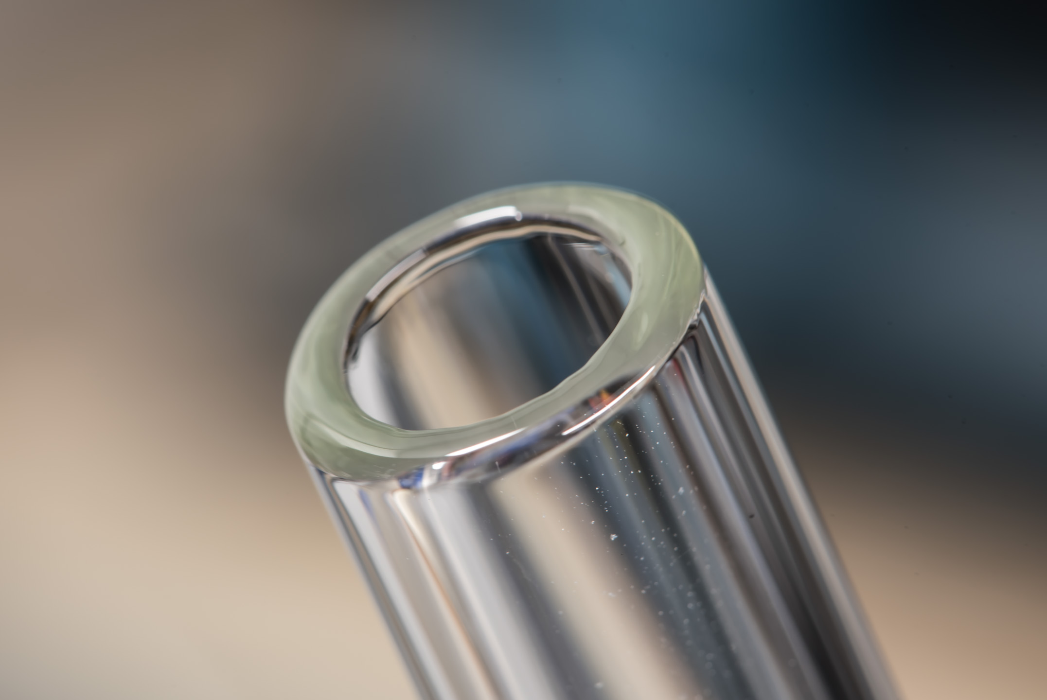 With the flame set to max, first gently warm up the tube so that you don't cause heat shock. Next, hold the tube so that the end is just past the blue cone, the hottest part of the flame. You want to keep rotating it to evenly heat the surface. After a few minutes, the glass will begin to melt, and the end will appear glossy; this is when you know the tube is ready. Remove from the heat and place on a safe, heat-resistant surface. The tube will be extremely hot, so make sure it doesn't touch anything that may melt and definitely don't touch it by accident. You need to let it cool down naturally, as trying to speed the process up with a splash of water or similar will result in the tube cracking spectacularly.