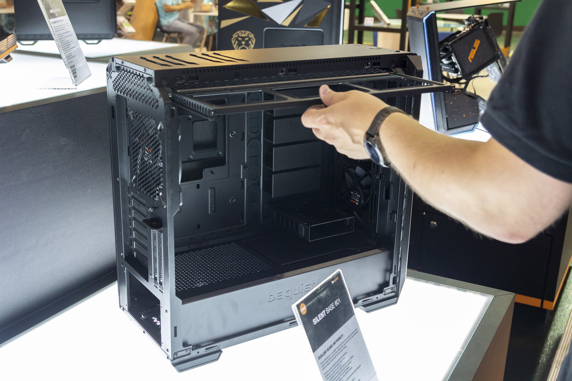 The Silent Base 601 will launch in Q3 for 120 Euros, and the Silent Base 801 will launch in Q4 for 140 Euros. These prices are for the non-windowed versions; if you want a window you will pay 10 Euros more. Both cases will be available in all black or with a silver or orange trim as usual.