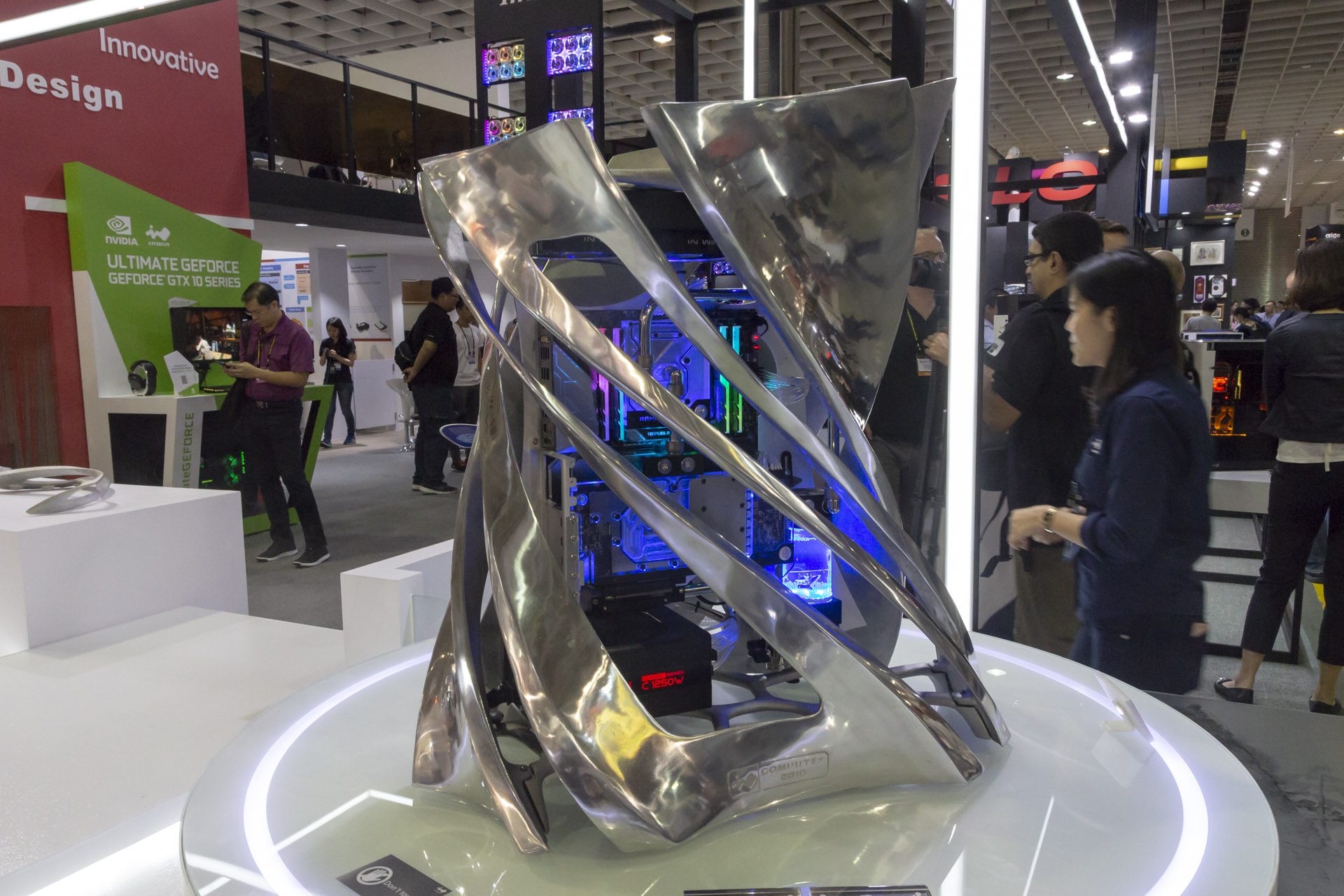 We’ll start with the Z-Tower, because how could we not. Described by In Win as ‘pure, architectural art’, the 40kg, all aluminium case has an incredible helix structure comprising five individually cast aluminium blocks that form something truly unique. It has E-ATX support, USB 3.1 Gen 2 Type-C, up to four drive mounts, and 360mm radiator support, but this case is of course all about the outside. That aluminium structure is proving a real challenge for In Win’s manufacturing at the moment; not all of the five that have been made have successfully come together. There are likely to be only a few hundred of these made in total, and each one will cost many thousands of dollars.