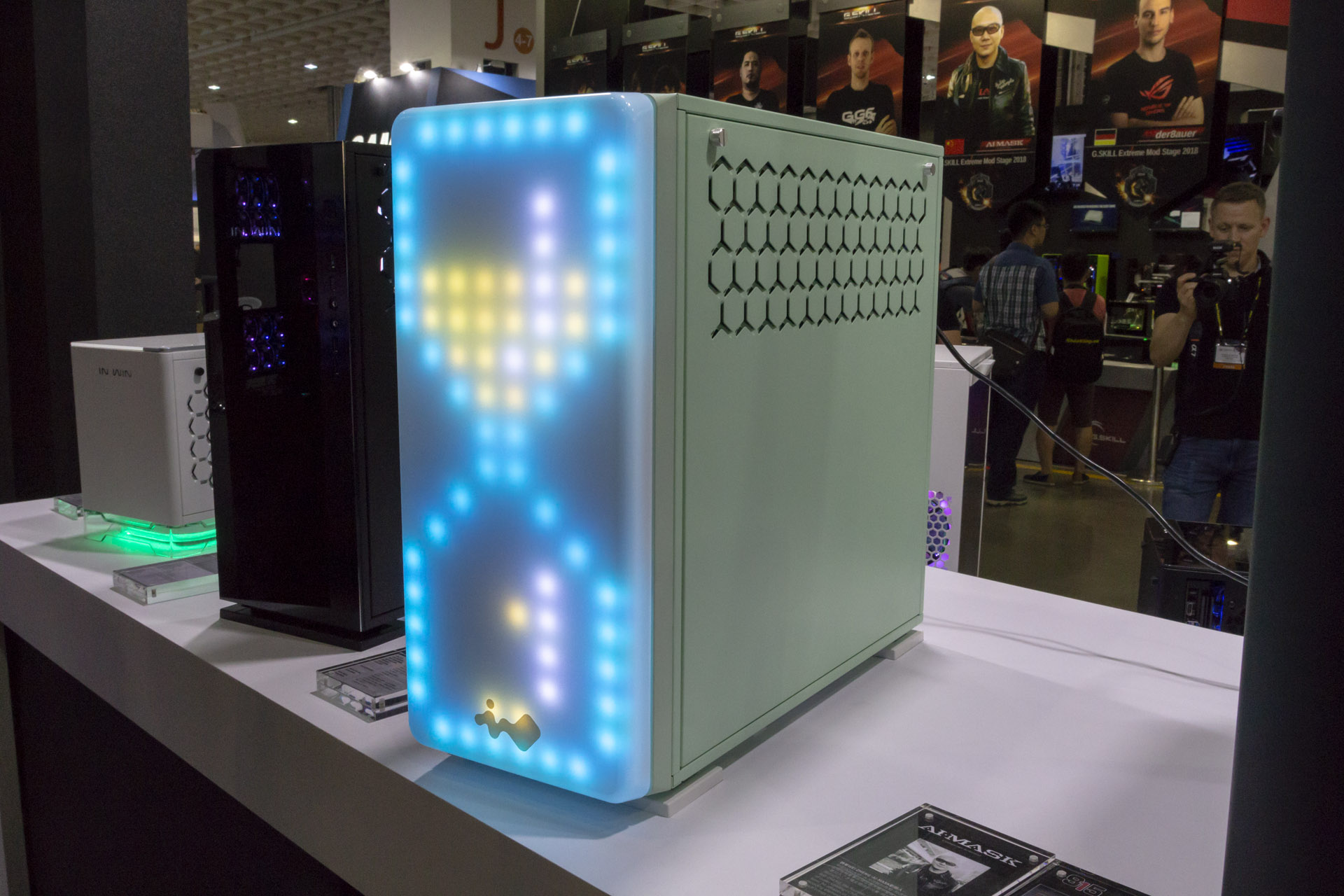 Last but not least, we have the new 307 chassis, which is based on the 303. Again sporting a USB 3.1 Gen 2 Type-C port, the highlight of this case is clearly that insane front panel, sporting 144 LED “pixels”, so called because they can be used as a sort of display, showing the time, for example. The chassis has a built-in microphone too, meaning it can react to ambient noise. Buttons on the side can be used to switch the display between various presets, or you can use In Win’s Glow software to customise it. The retail price for the 307 is expected to be $300.