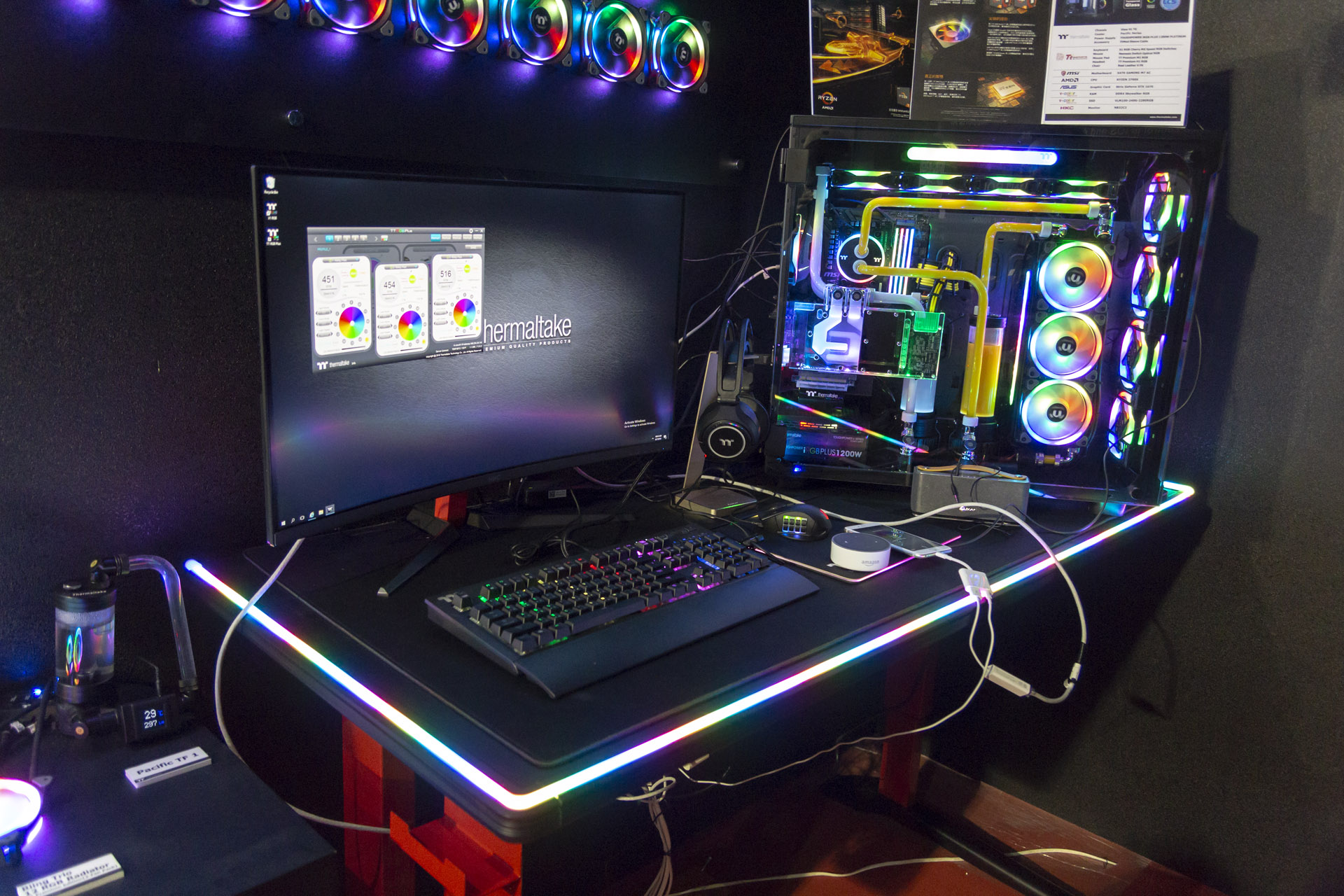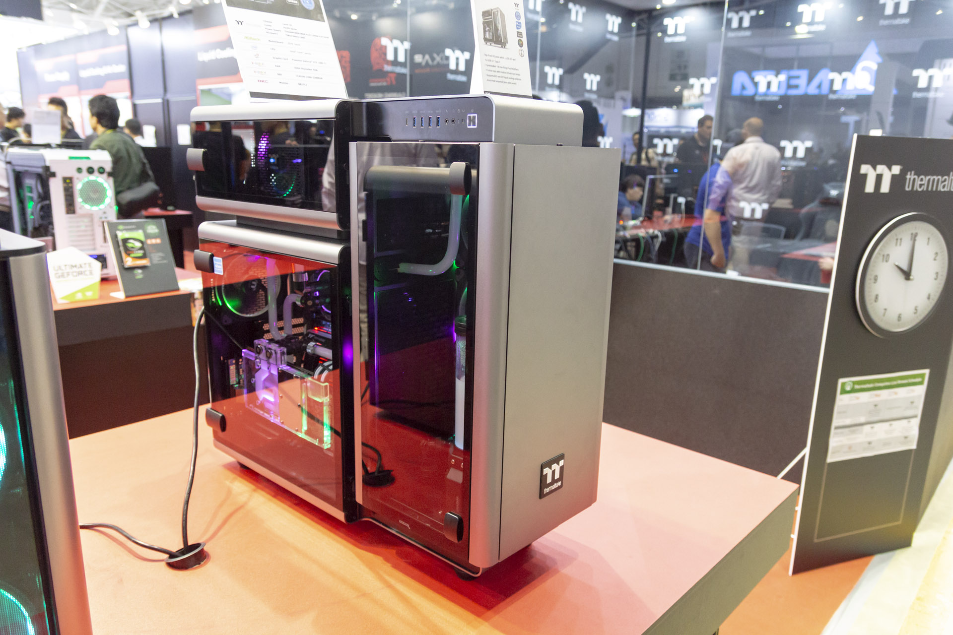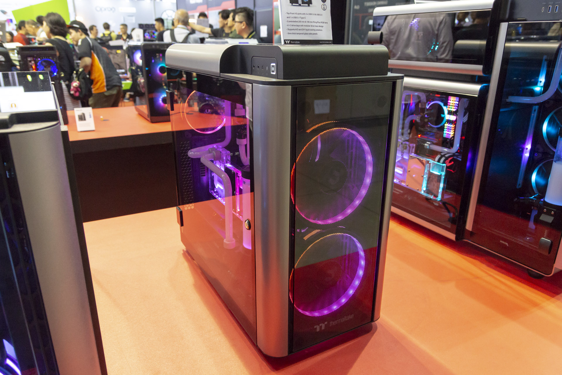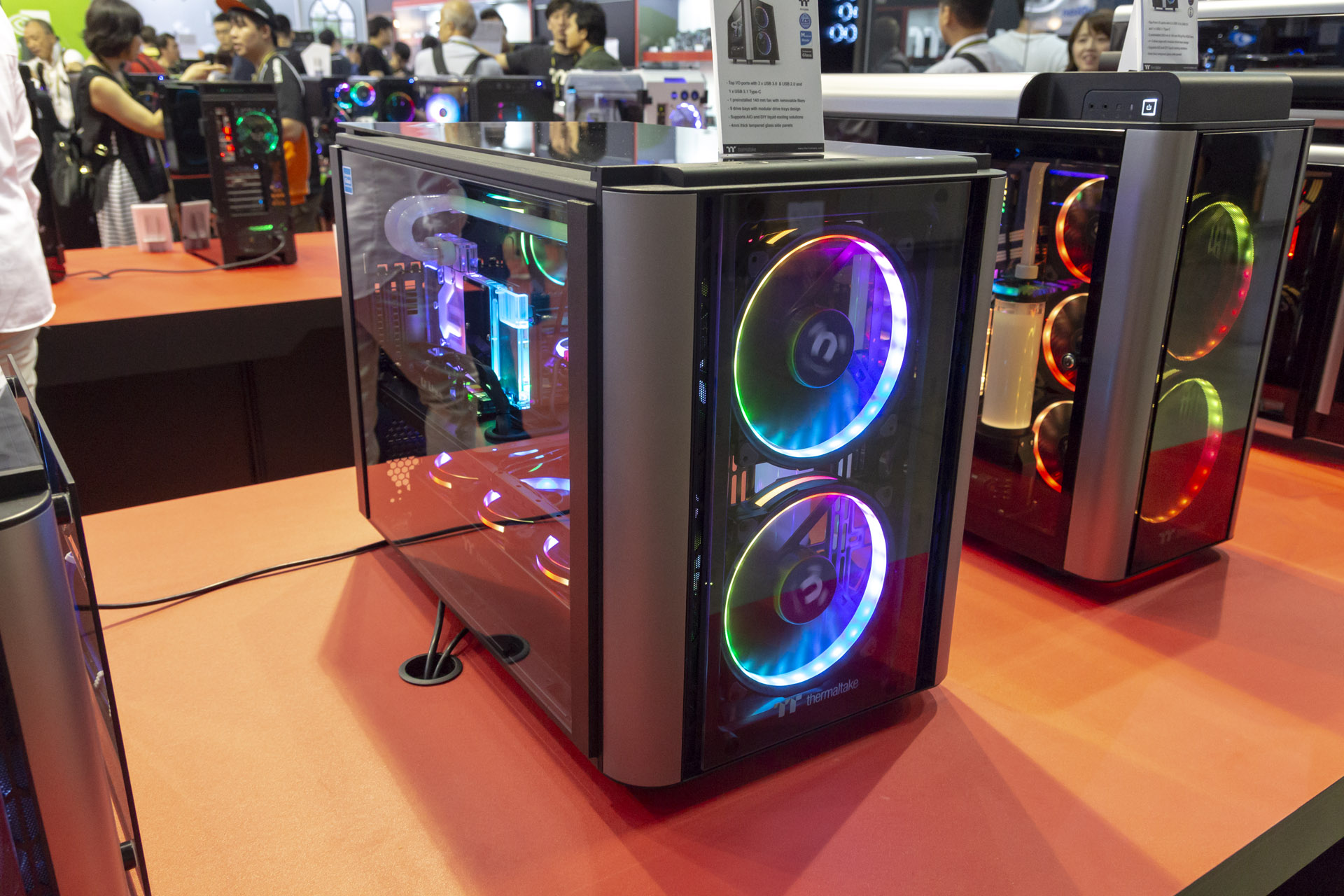 That’s not all Thermaltake had on show; it actually had one of the biggest portfolios of new products at the entire show, with a silly number of press releases landing in our inbox over the week. Our focus here are the cases and RGB ecosystem, but water-cooling fittings, peripherals, and PSUs were also there.