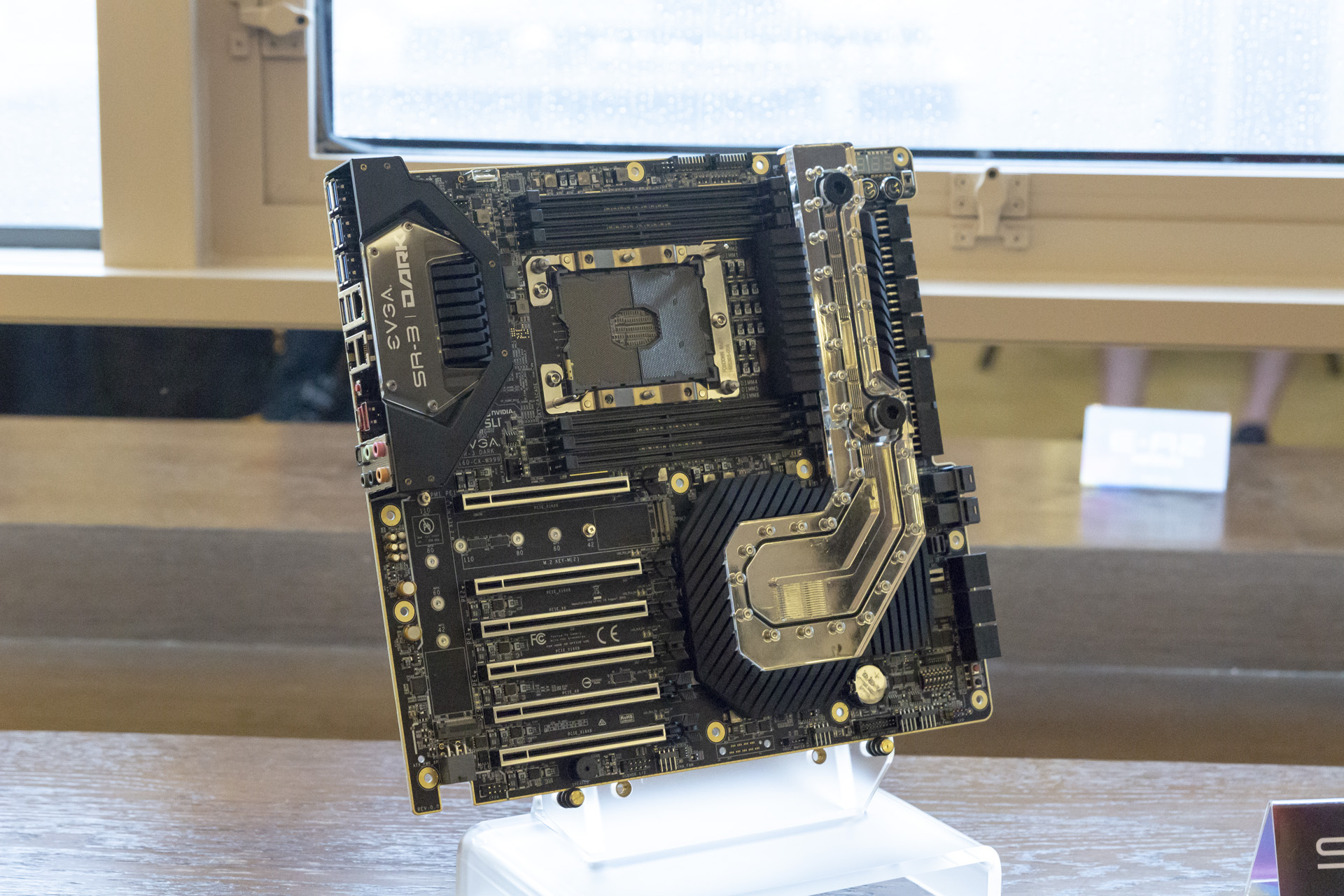 At Computex 2019, EVGA has displayed its upcoming SR-3 Dark motherboard that caters to LGA 3647 CPUs, while also showing off a new $299 water block built exclusively for its RTX 2080 Ti Kingpin graphics card.