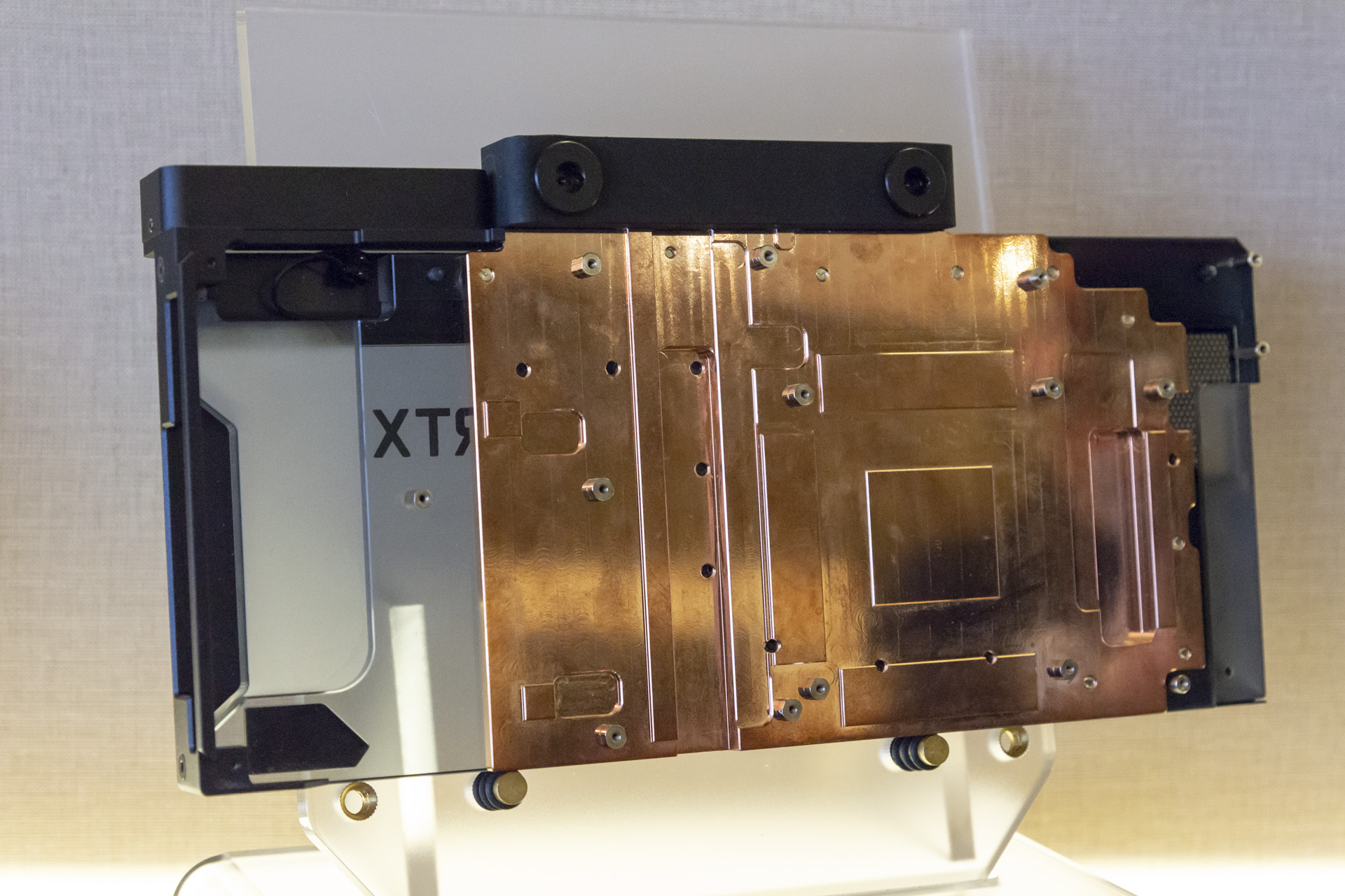 EVGA also showed us a new water block designed in-house and manufactured by an undisclosed OEM. It’s built to fit the monstrous RTX 2080 Ti Kingpin card that EVGA manufactures and sells for a whopping £1,900. The water block has the same customisable OLED screen as the original card, and as blocks go it is definitely on the expensive side, with a planned MSRP of $299 when it begins shipping within the next few weeks. Then again, if you already own a £1,900 graphics card that perhaps isn’t going to be a limiting factor.