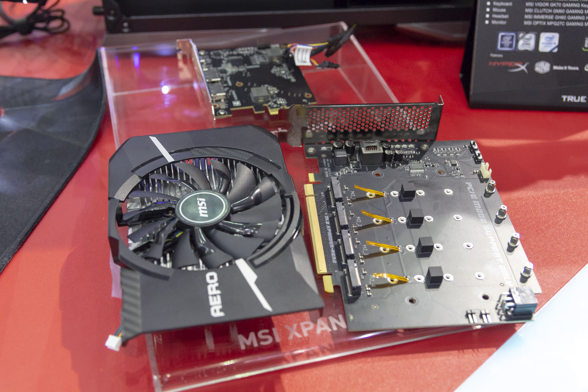 MSI has revealed a bunch of new AMD motherboards for the X399 and B450 chipsets at Computex 2018, as well as an M.2 expansion card onto which up to four M.2 PCIe SSDs can be installed.