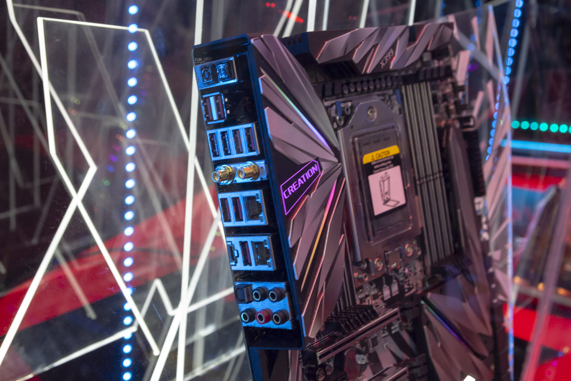 Following the announcement of second-generation Ryzen Threadripper processors with up to 32 cores, it’s unsurprising to see board manufacturers looking to market new and beefier X399 motherboards. One such product is the MSI MEG X399 Creation prototype, which looks well set to feed those cores with a whopping 19 power phases and dual eight-pin EPS power inputs. The numerous large heatsinks are all fully metal (no plastic covers), and onboard there are 10 PWM fan headers, three M.2 slots each connected to a heatsink, dual Intel LAN ports, and Intel Wi-Fi. We are expecting this board to cost around £400 or even more.