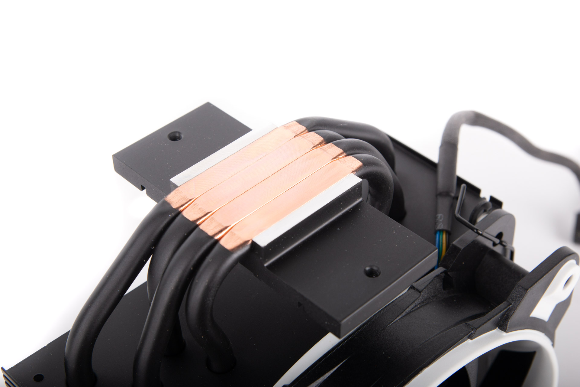 The quad 6mm heatpipes make direct contact with the CPU and there are minimal gaps between them too. You get a small pouch of Arctic's MX-4 thermal paste, which is enough for a couple of applications. Installation is a tad fiddly, though, with pins passing down through plates that screw to the cooler before securing to backplates for LGA115X and AM4 or LGA20xx socket threads. As the screws aren't fixed into the plates, you'll likely find it much easier to install the cooler with the motherboard out of the case, or at the very least laid on its side. It's a secure mount, though, and there are relatively few parts to deal with.