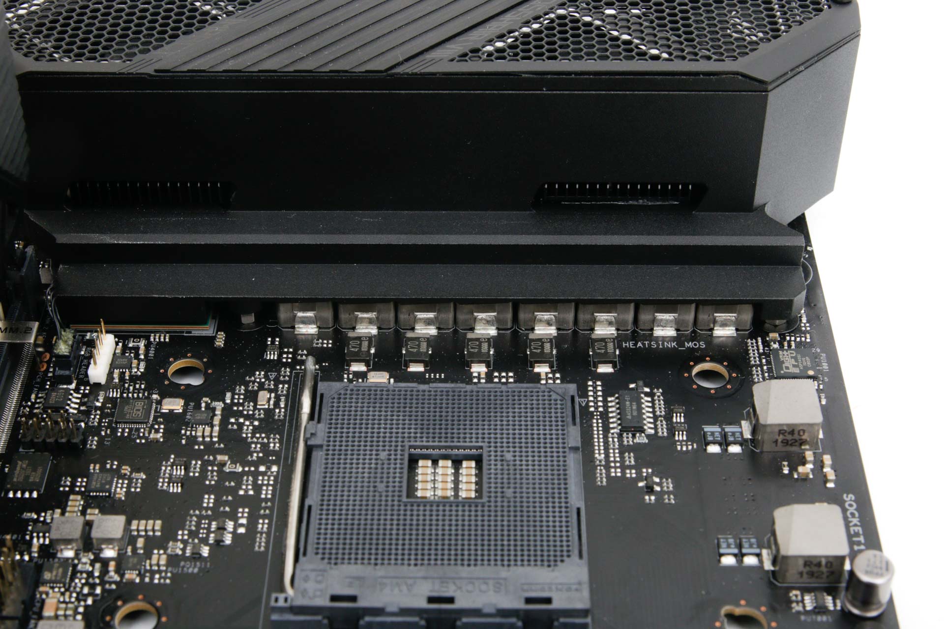There's an 8+2 phase power delivery that's hopefully going to be tough enough to deal with that Ryzen 9 3950X that you'll no-doubt want to be pairing with this motherboard, but it's the way this is all cooled that's the most impressive part of the Impact. Above, you can see the chipset off to the left under a large, single-piece aluminum heatsink that also cools the row of chokes too. Above this are two small slits that reveal a separate pair of finned heatsinks inside the I/O shroud, which attach to the main metal block and are simply there to make best use of two 30mm fans in the top.