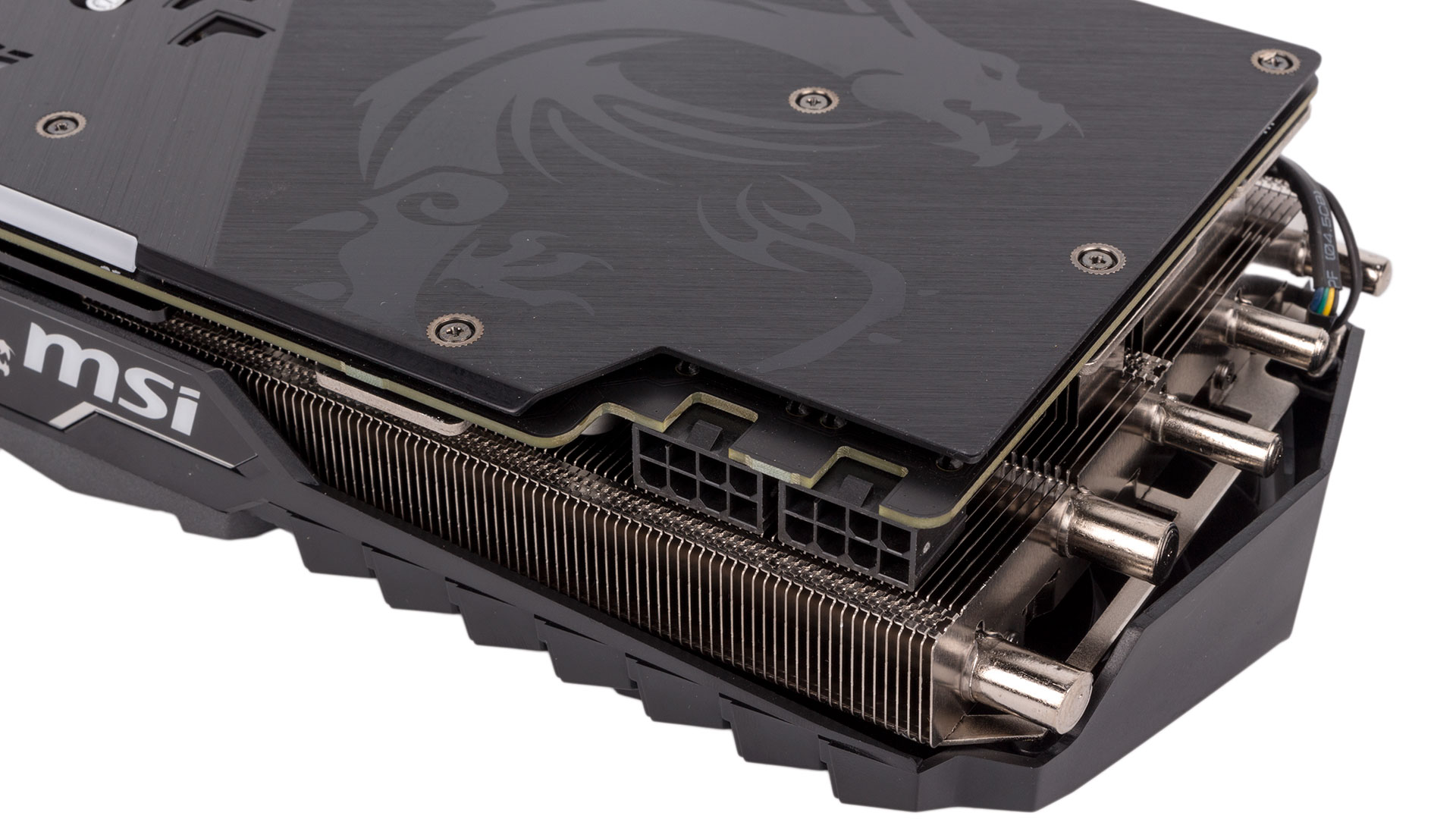 MSI uses a pair of eight-pin PCIe power headers for this card, meaning it has access to up to 375W in total, which will be plenty.