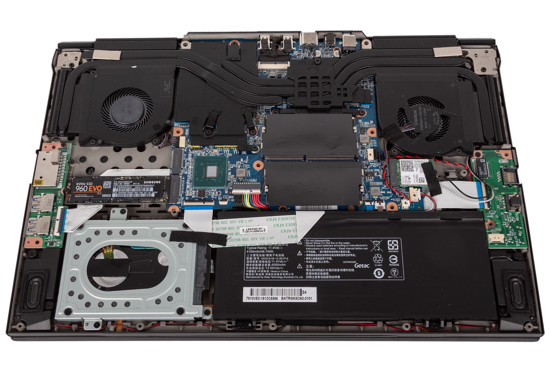 For storage, you get a potent combination of a 500GB Samsung 960 Evo M.2 SSD for the boot drive and a 2.5” 1TB HDD for bulk storage. Other laptops with similar specs, especially more premium ones that focus heavily on cutting dimensions and weight, are flash-based only, so the Recoil II has the option of considerable storage expansion. In fact, there is a second unused M.2 slot (PCIe only), so the potential upgrade options are pretty extensive.