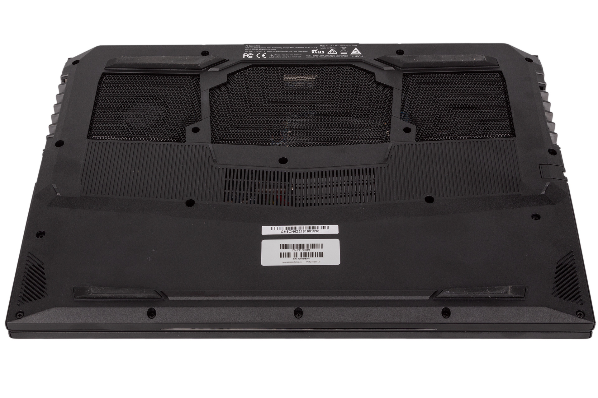 The underside is very much focussed on ventilation, as the vents here are massive and very porous, which should serve the dual-fan cooling system nicely. Air is exhausted both out the back and to the sides, so we’re hoping for low temperatures under load.