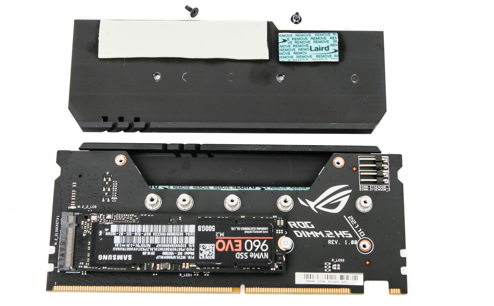 This helped to knock 16°C off the load temperature of our Samsung 960 Evo but also has the advantage of making your M.2 SSDs much easier to get at, especially if you'll be loading up several of the PCIe slots. The modules support two PCIe 3.0 x4 or SATA 6Gbps M.2 SSDs up to 110mm in length, while the slot on the PCB caters for PCIe 3.0 x4 with an 80mm length limit.