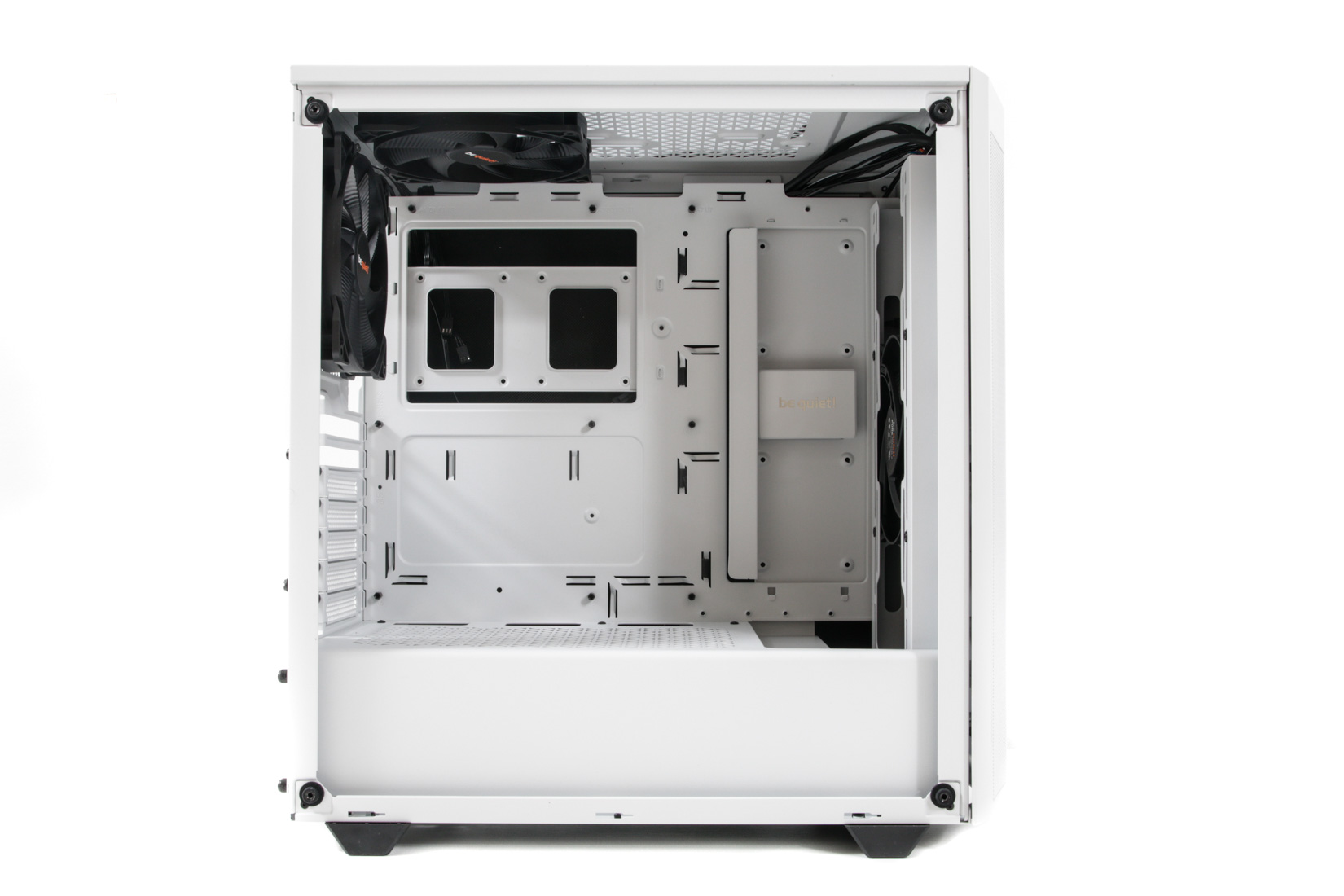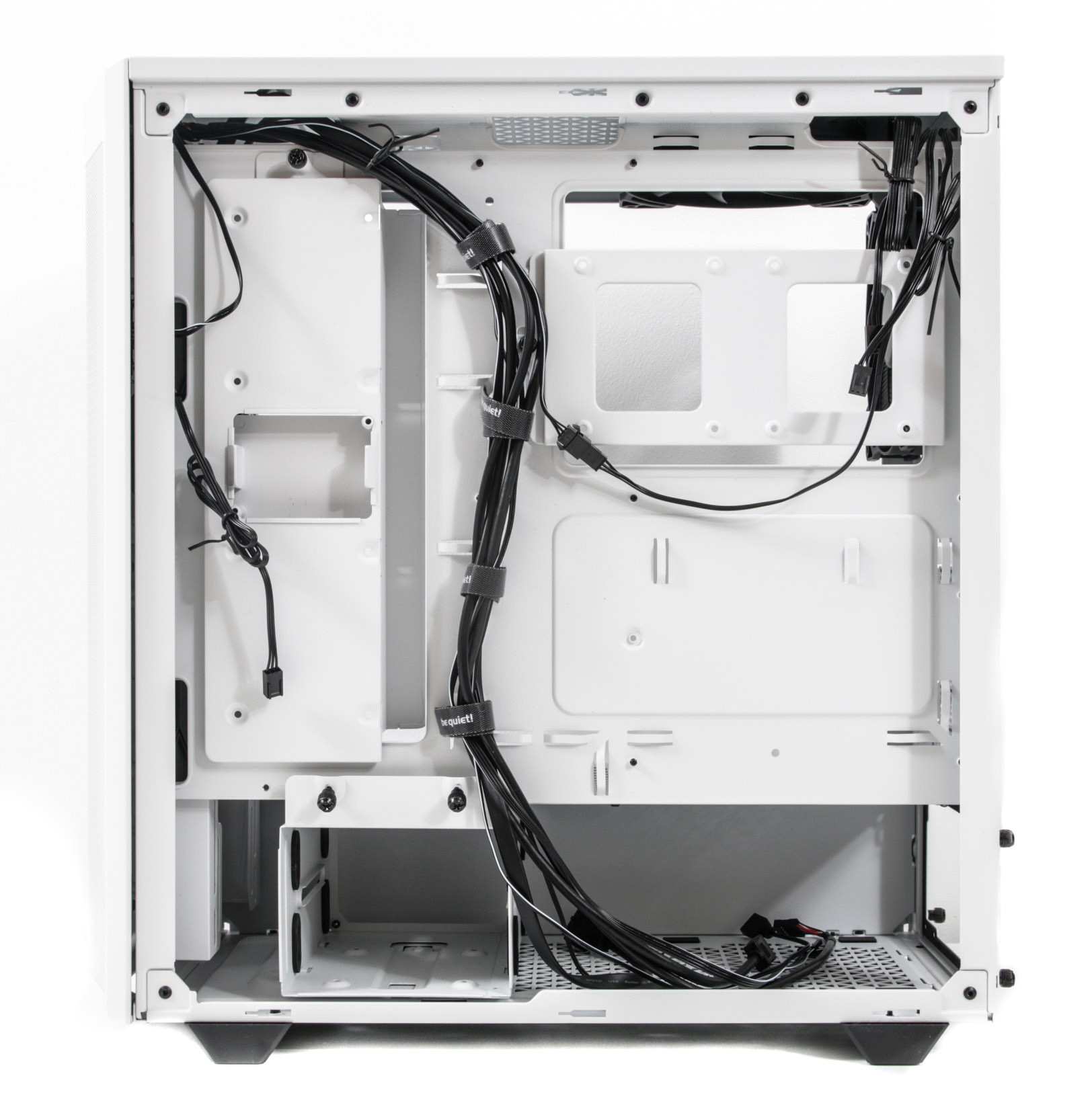 Things are a little more cramped than they first appear. For instance, you'll definitely want to hook up as many cables as you can before you install your hardware. Fitting the 8-pin CPU connector can be especially trying, given that you have two fans in the way in the rear of the case. Be Quiet! does offer a decent array of cable routing and tidying options, though, with an angled cut-out next to the motherboard tray offering a smarter look than the usual rubber grommets.