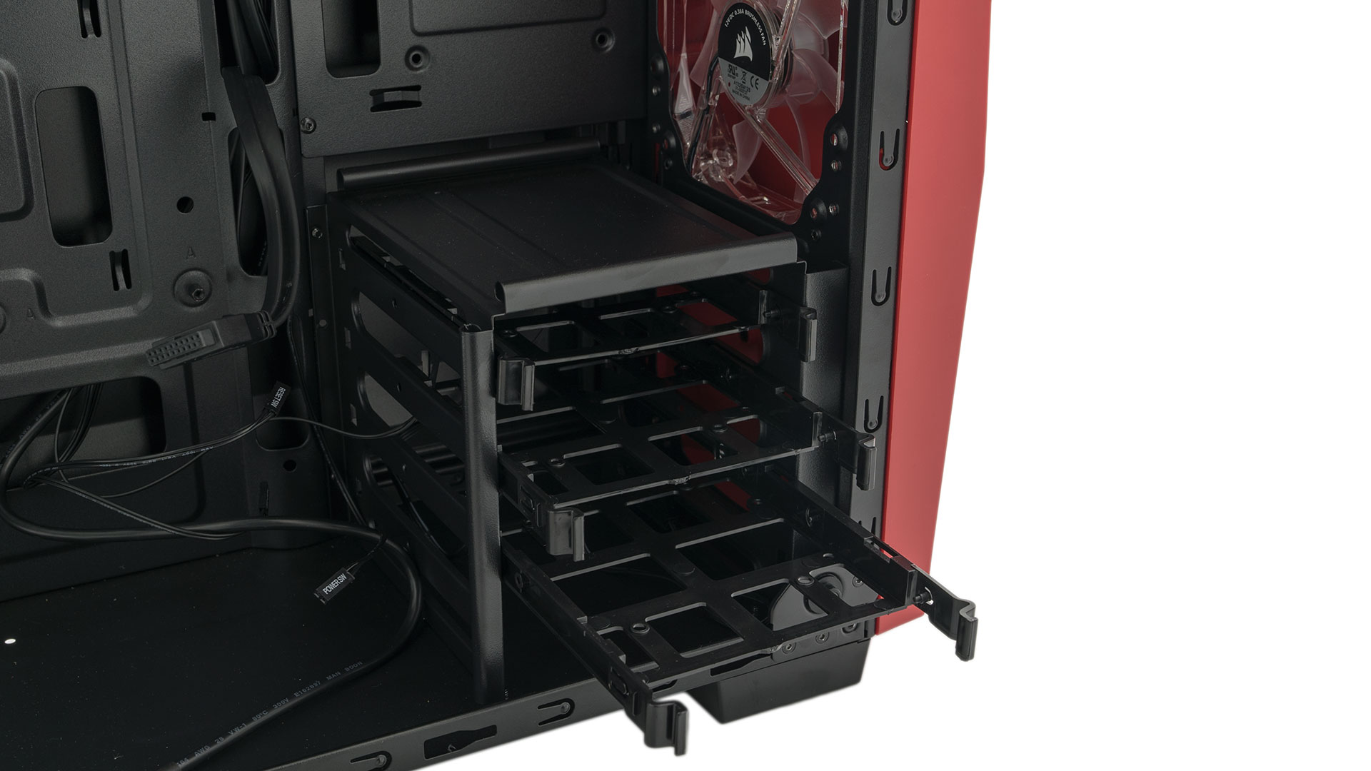 Oddly for a company so committed to all-in-one liquid-cooling, only 120mm radiators are supported in the rear. The roof only has space for fans thanks to the proximity to the motherboard, and even the front does not officially support radiators, although it wouldn’t take much modding to get one to fit. The HDD cage is held in by screws, so this is easily removed to make way. Still, a lack of support for double-fan radiators is another area where this case lags behind competitors.